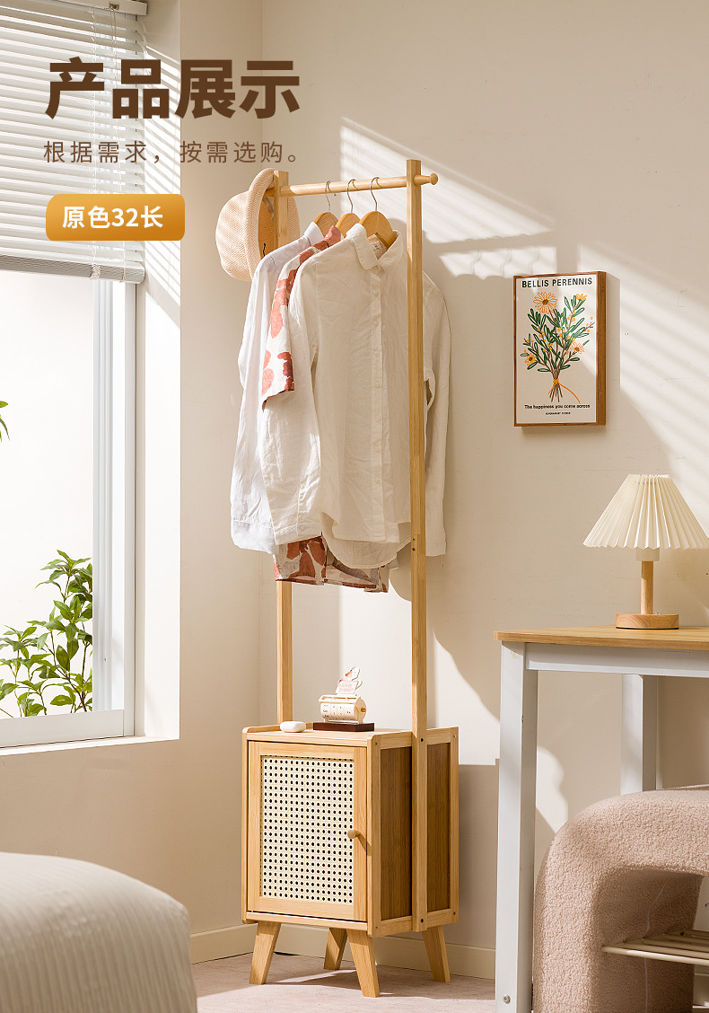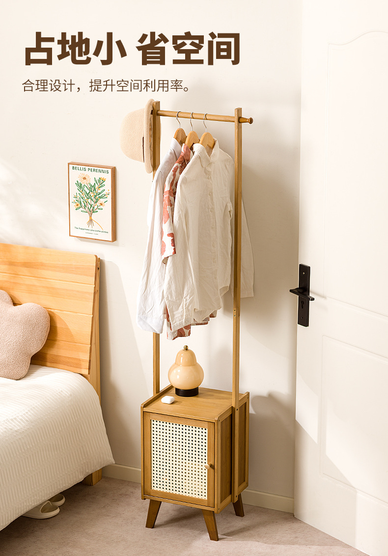 침실 작은 아파트 단단한 나무 바닥 서랍이있는 침대 옆 캐비닛 옷걸이 일체형 가정용 옷걸이 침대 옆 캐비닛