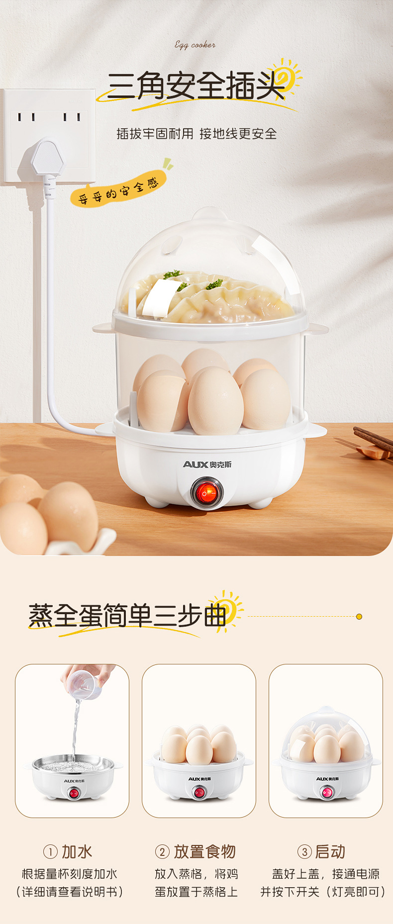 오크스 계란찜기, 계란찜기, 자동 전원 차단, 다기능 계란찜기, 소형 가정용 아침 식사 기계, 기숙사스토어 가기