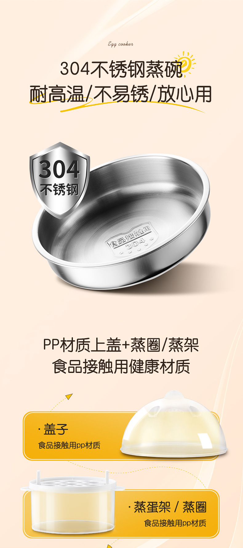 • 304 스테인리스 스틸 계란찜기 - 2단