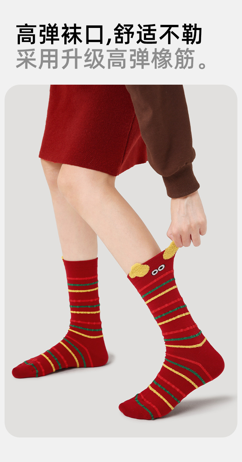 3 쌍-르네상스 오리지널 드래곤 레드 중간 튜브 양말 도매 새로운 트렌드 만화 뼈없는 여성 양말 레드 양말 여성
