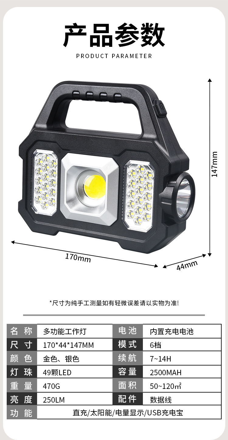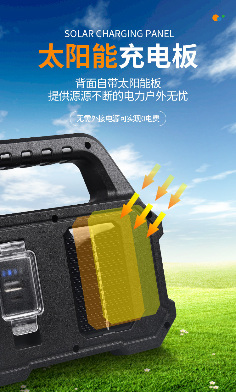 다기능 서치라이트 야외 방수 태양열 충전 보물 강한 빛 손전등 cob 휴대용 램프 도매 캠핑스토어 가기