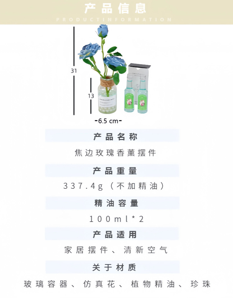• 번트엣지 로즈블루 [꽃병+진주+에센셜오일 200ML]