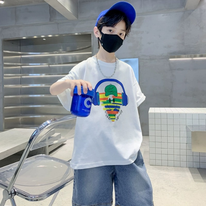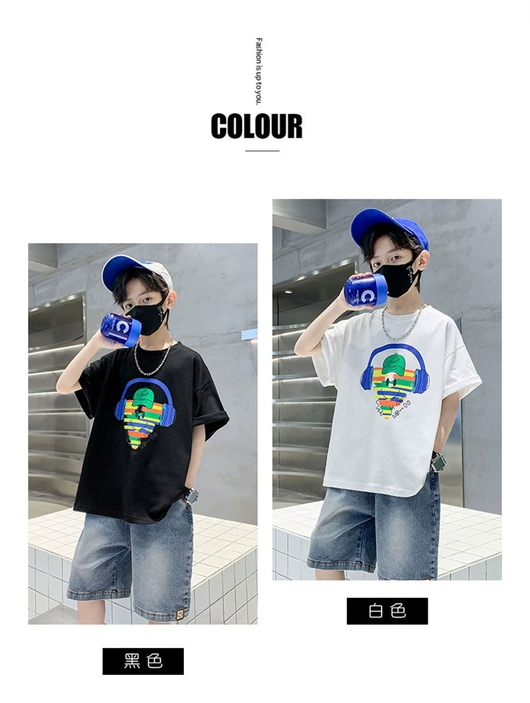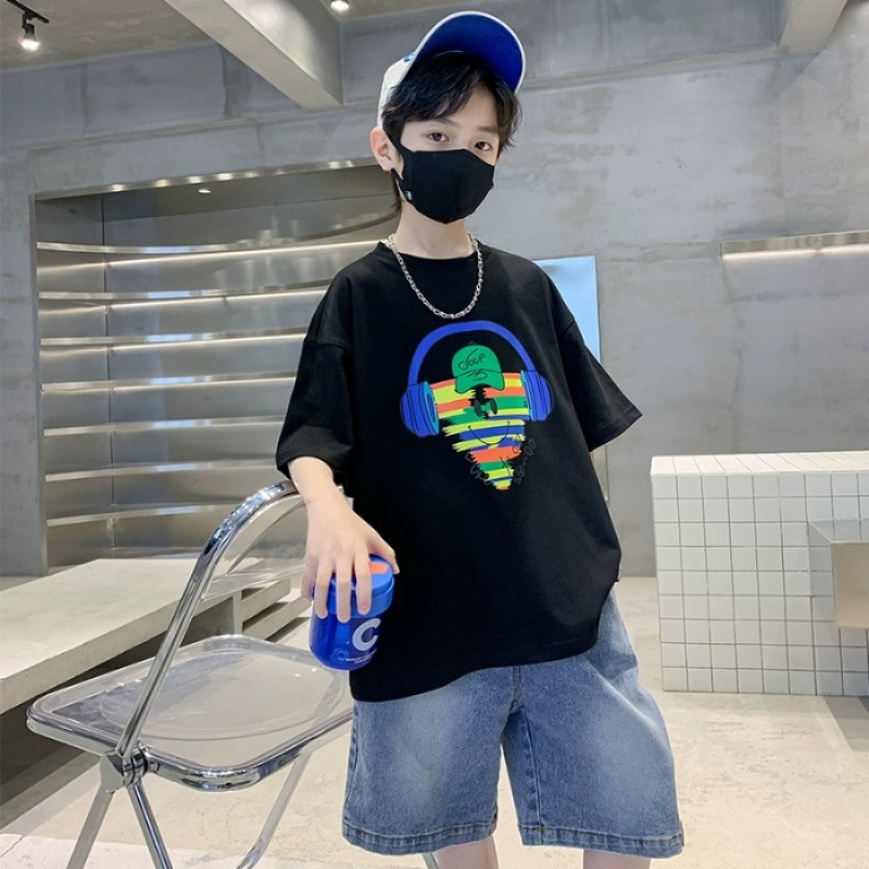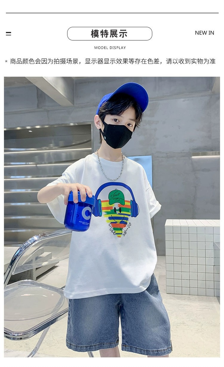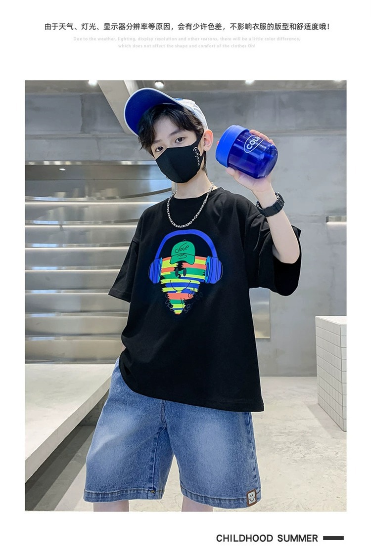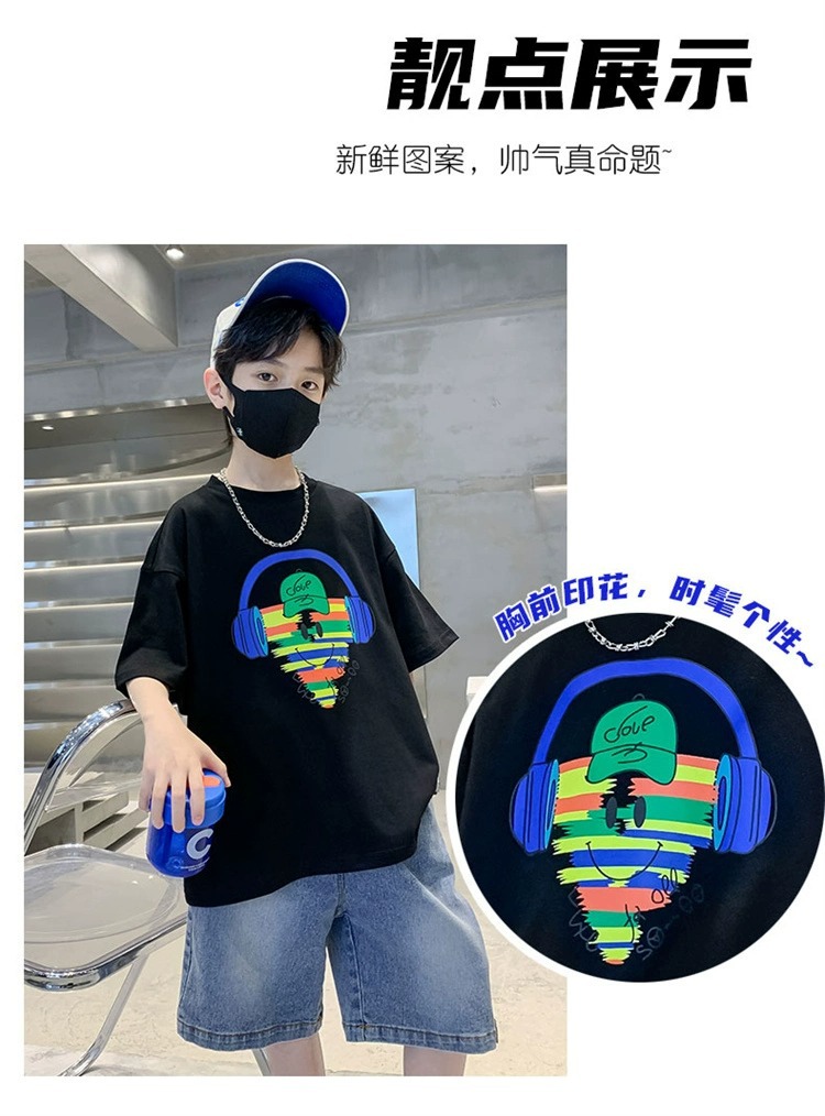 남학생 반소매 티셔츠 여름 2024 년 새 중대형 어린이 튀긴 거리 반소매 느슨한 서양식 어린이 여름 패션스토어 가기