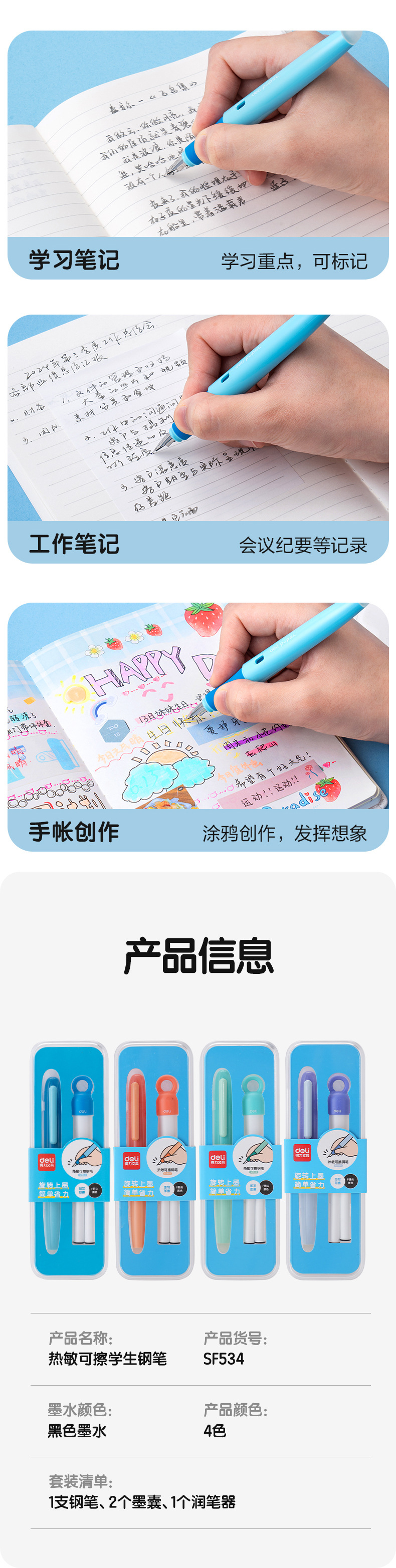 델리 SF534 학생용 열 지울 수 있는 만년필, 3학년 전용, 4학년 초급, 남녀 공용 캘리그라피 연습