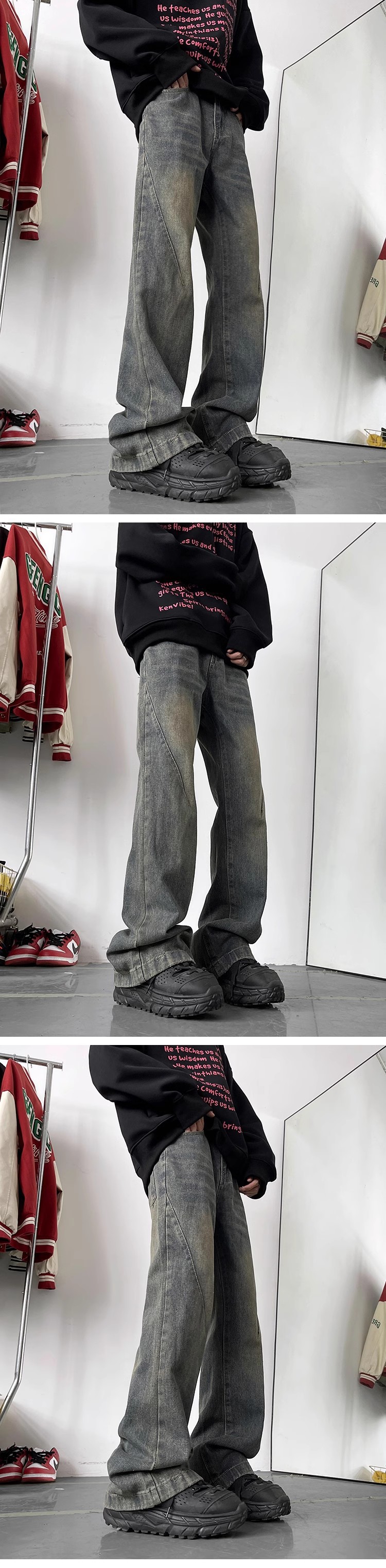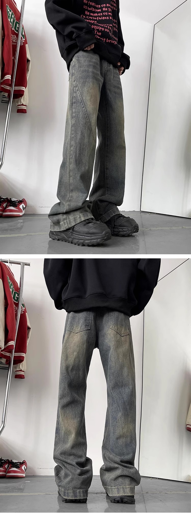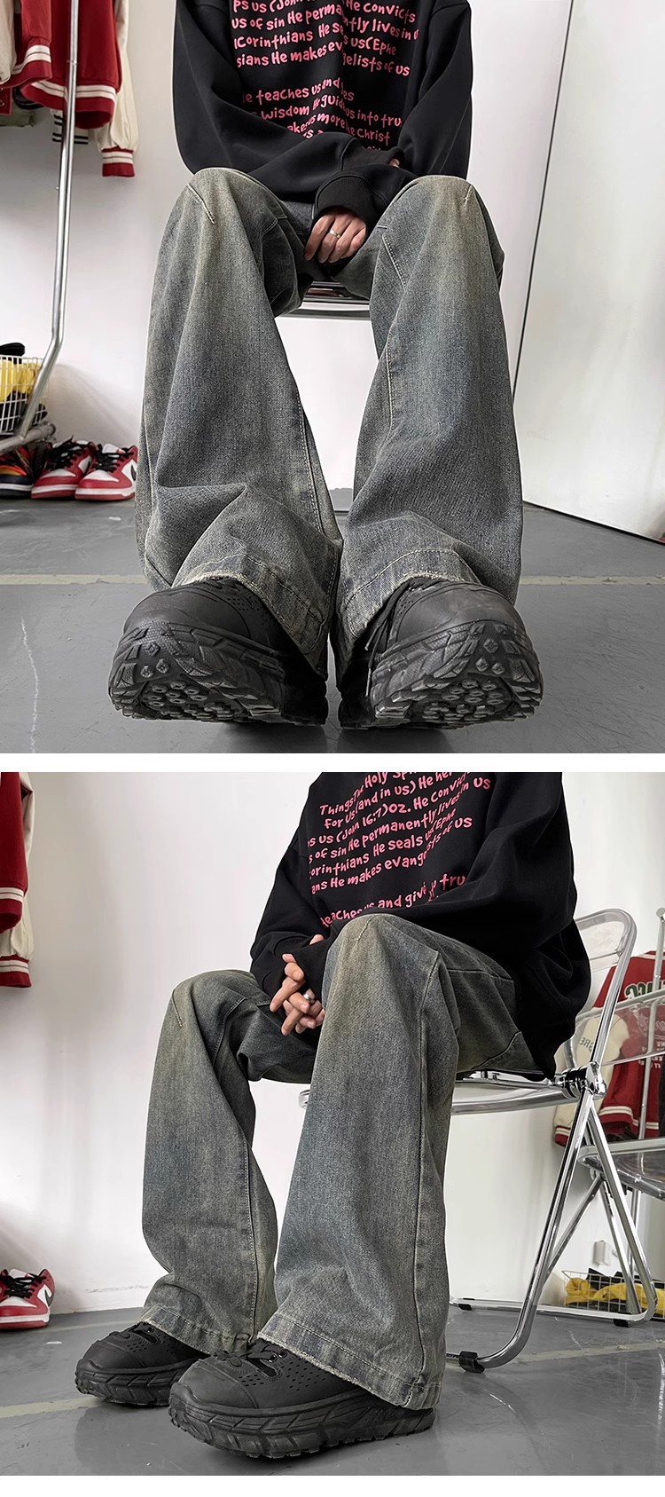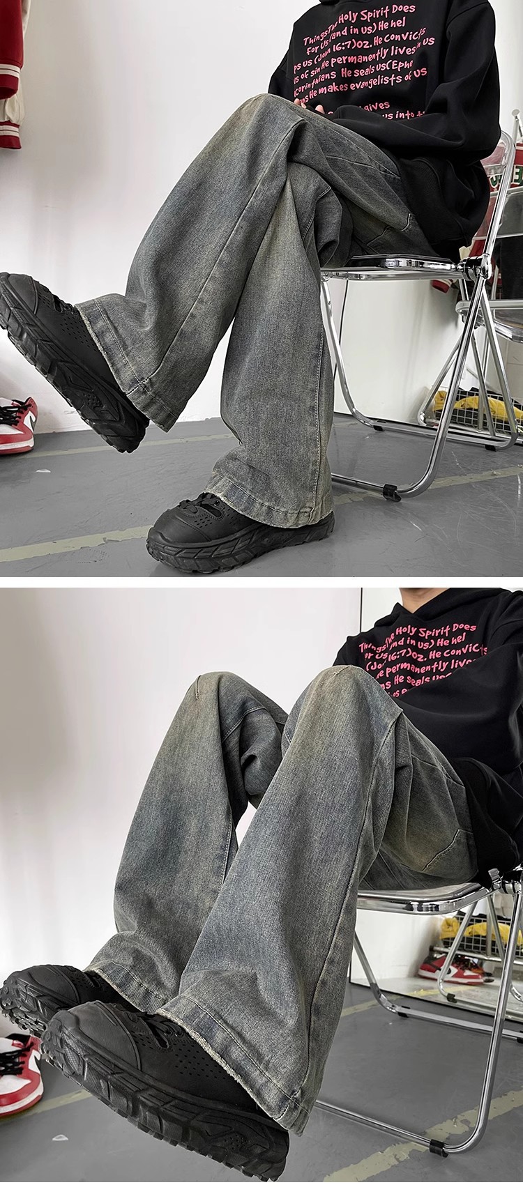 청바지 남자의 가을과 겨울 청결한 오래 된 바지 미국 스타일 복고풍 느슨한 캐주얼 바지