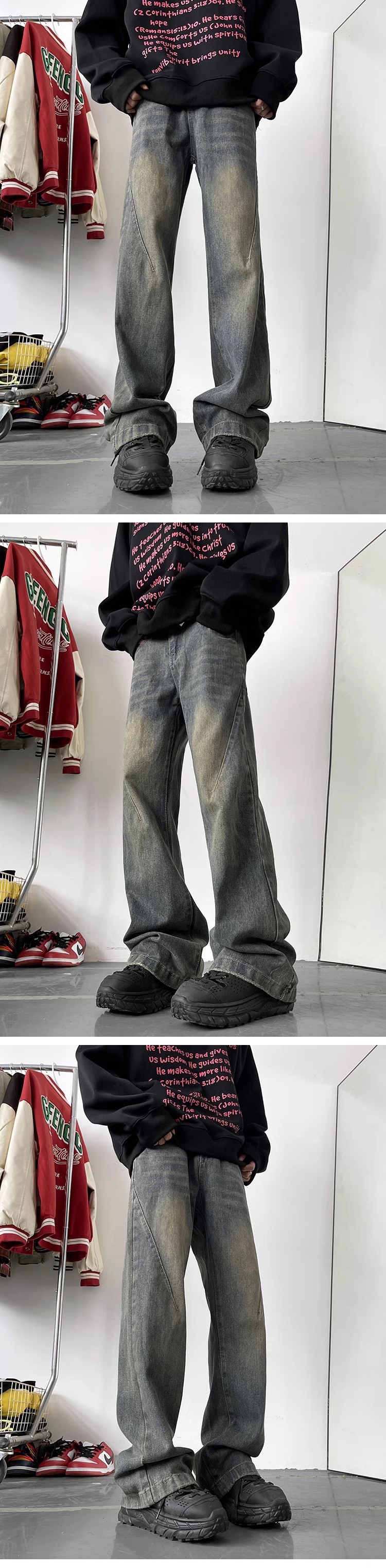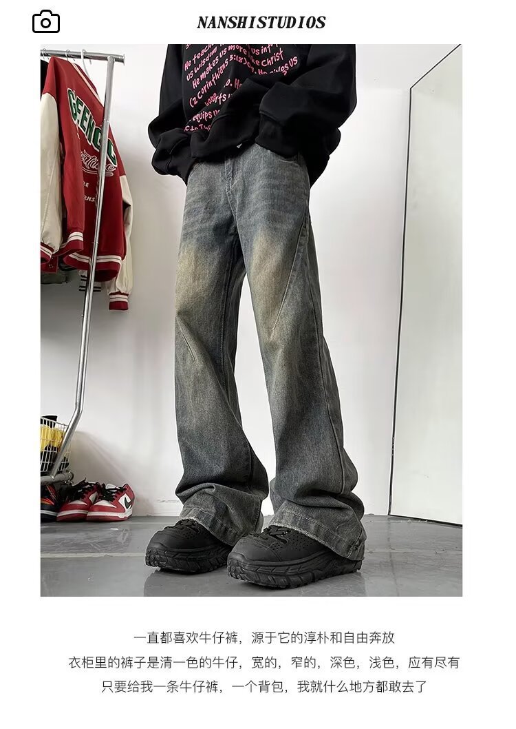 청바지 남자의 가을과 겨울 청결한 오래 된 바지 미국 스타일 복고풍 느슨한 캐주얼 바지스토어 가기