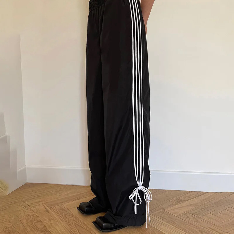 국경 간 유럽과 미국의 스포츠 캐주얼 바지 2025 여름 새로운 느슨한 패션 올 매치 솔리드 컬러 스트라이프 긴 바지스토어 가기