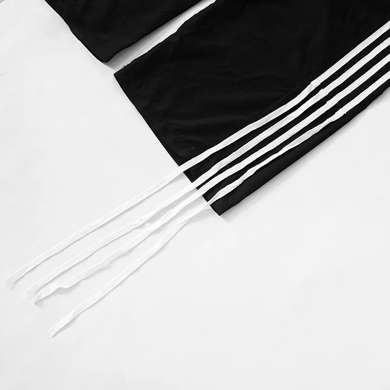 국경 간 유럽과 미국의 스포츠 캐주얼 바지 2025 여름 새로운 느슨한 패션 올 매치 솔리드 컬러 스트라이프 긴 바지