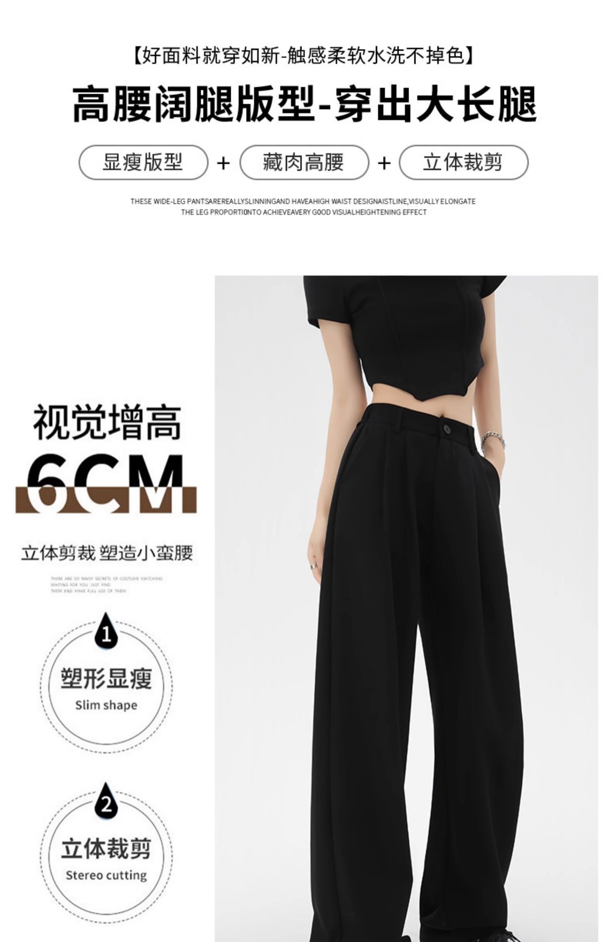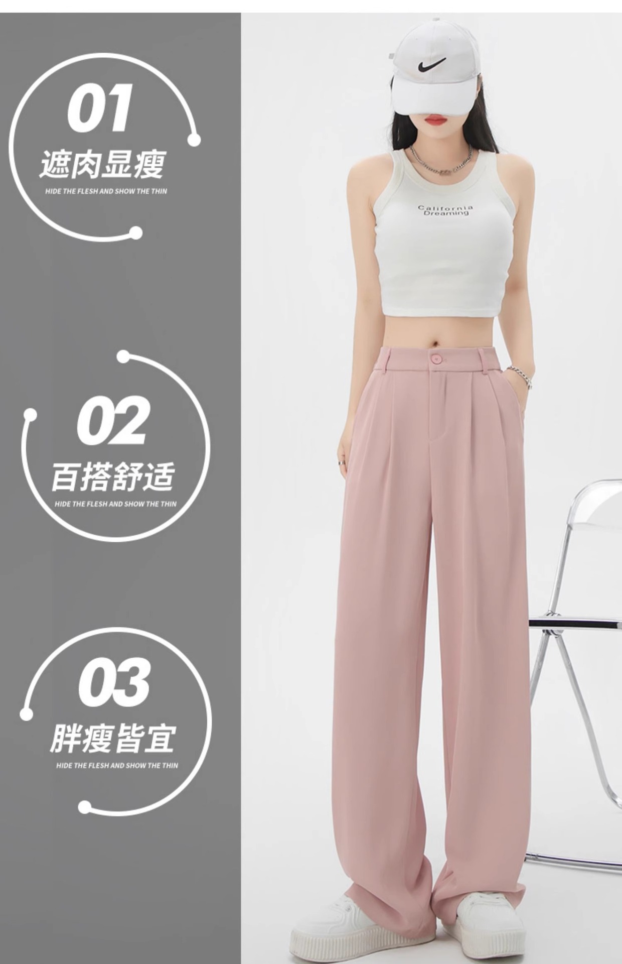 국경 간 대외 무역 공장 직접 도매 세대 세트 캐주얼 바지 여성의 높은 허리 드레이프 스트레이트 좁은 넓은 다리 바지
