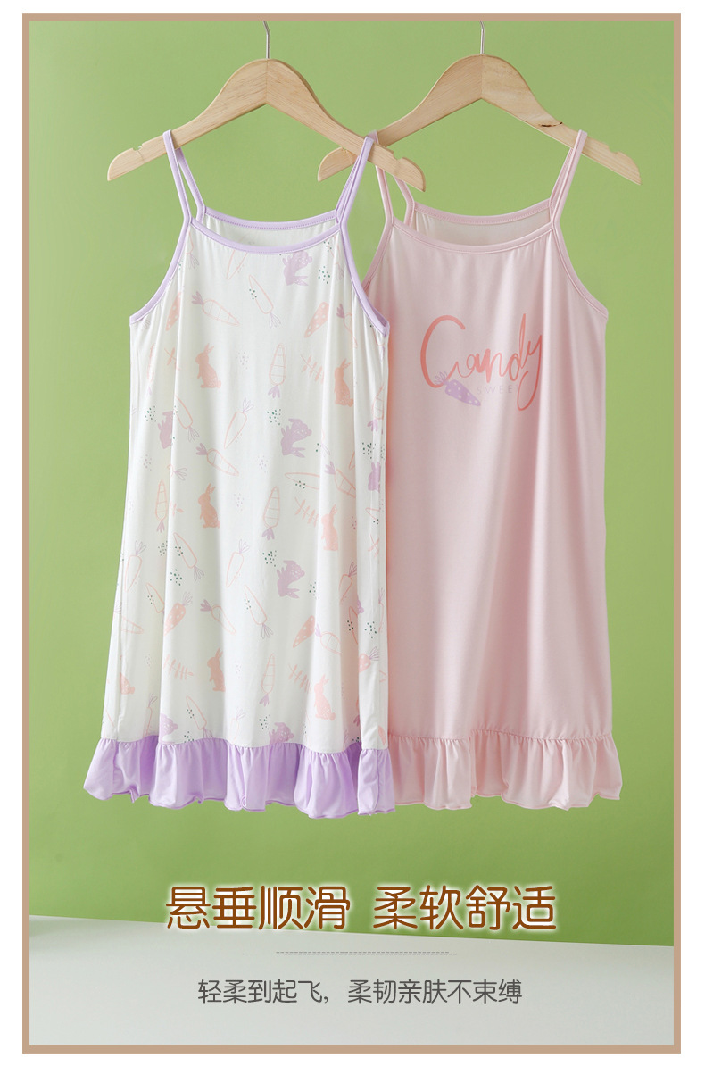 소녀의 잠옷 여름 모달 얇은 통기성 슬링 파자마 소녀의 공주 스타일 홈 원피스 캐주얼 잠옷스토어 가기