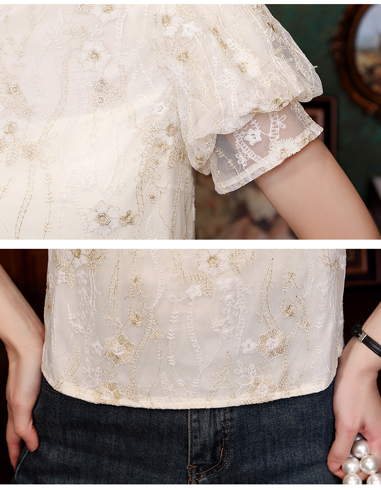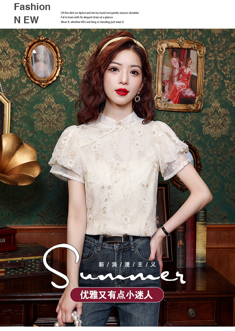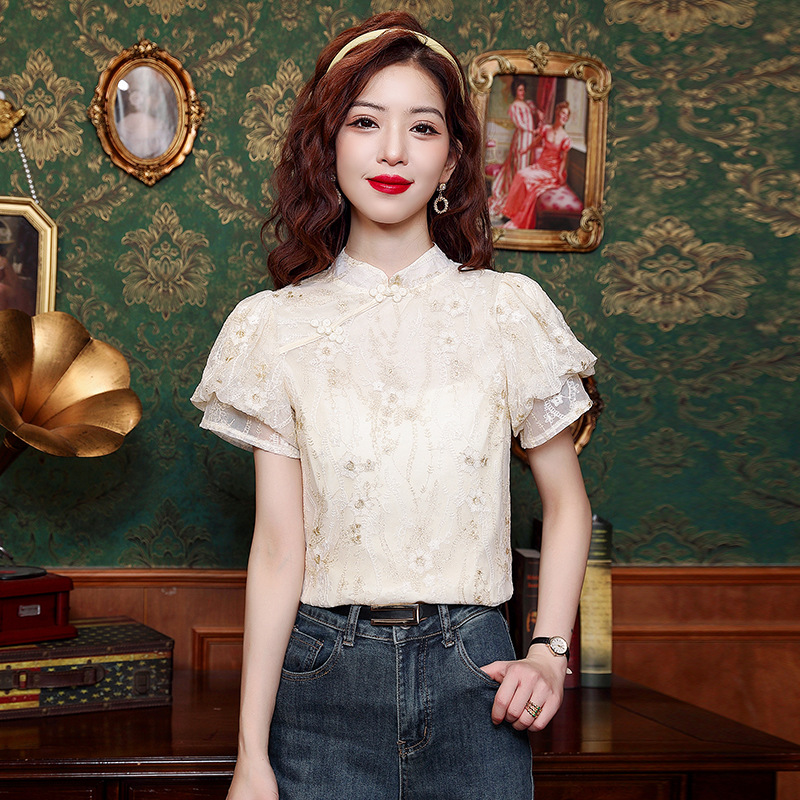 빈티지 새로운 중국 스타일 국가 스타일 셔츠 여성 여름 2025 새로운 개선 된 청삼 스타일 탑 짧은 소매 레이스 작은 셔츠스토어 가기