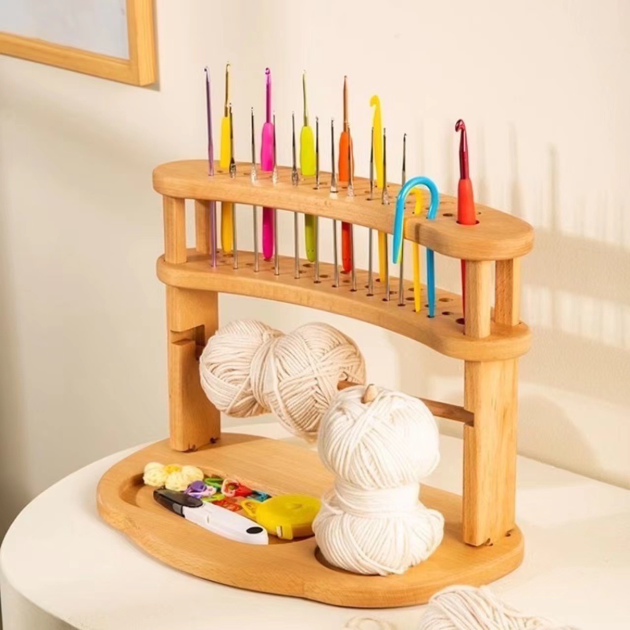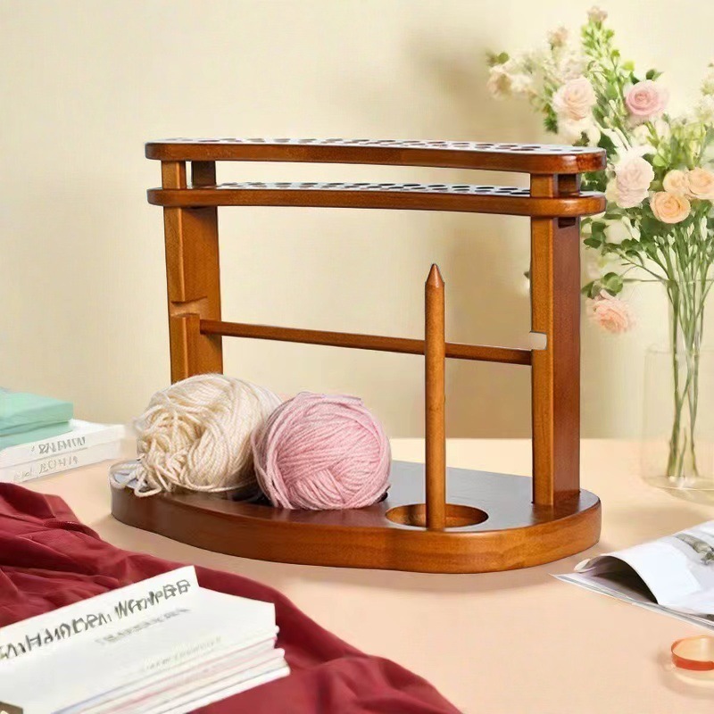국경 간 단단한 나무 크로 셰 뜨개질 보관 랙 데스크탑 양모 손으로 짠 고정 디스펜서 원사 보관 스풀 랙