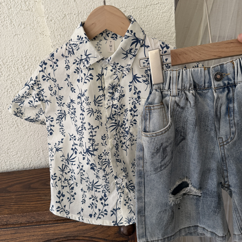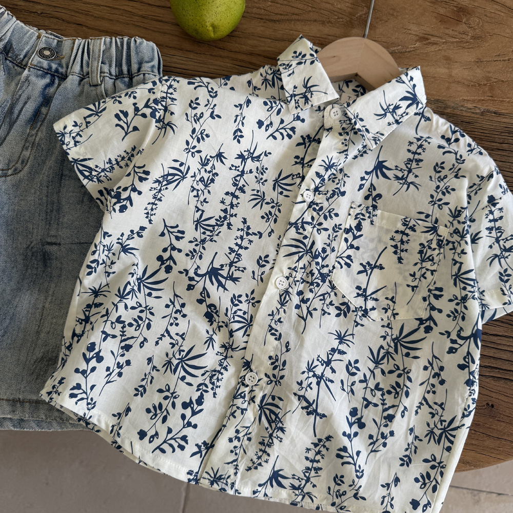 소년 셔츠 얇은 2025 새로운 여름 중대형 어린이 국가 트렌드 수묵화 소년과 어린이 순면 반팔 티셔츠스토어 가기