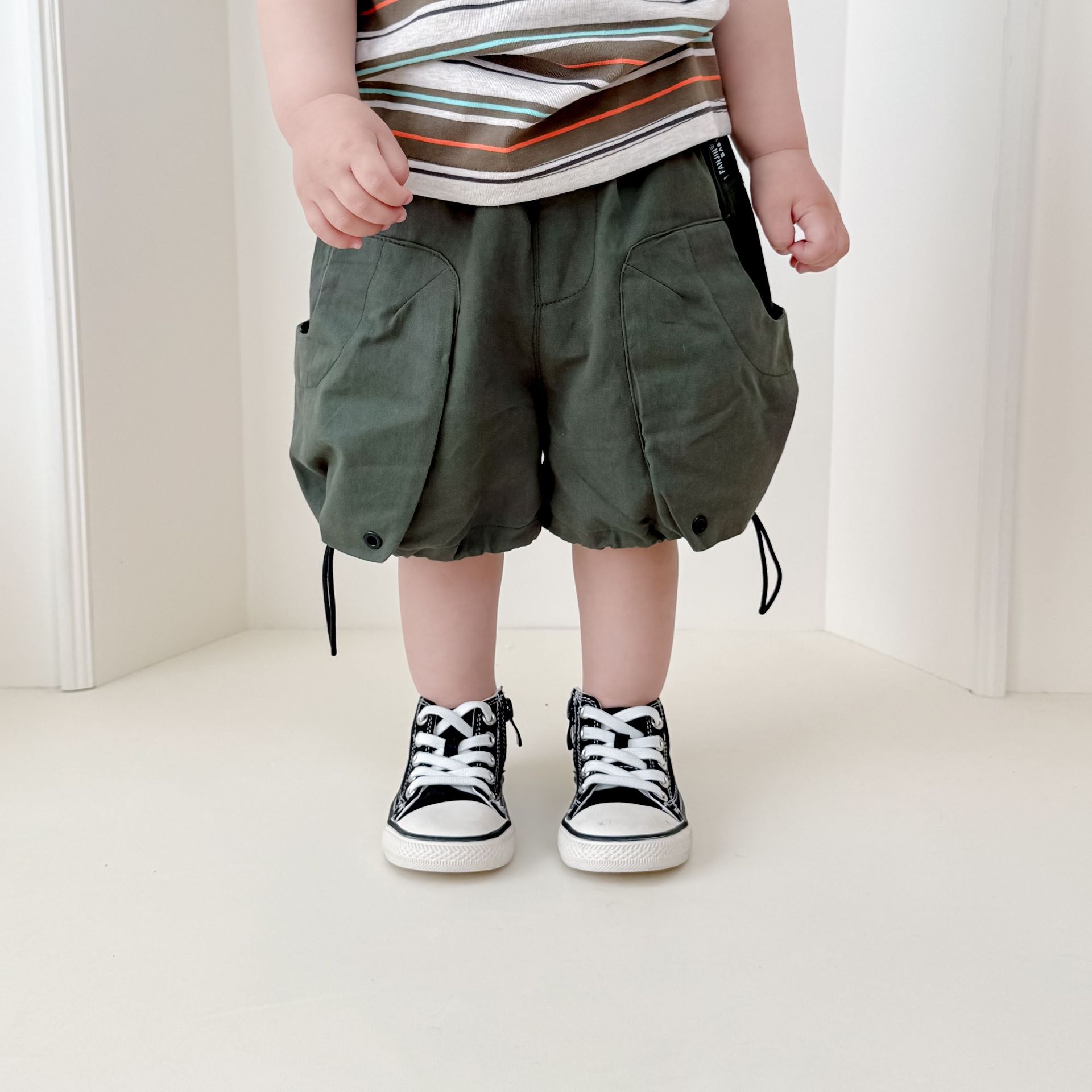 Ins 아기 유아 툴링 바지 여름 새 한국면 남성 어린이 포켓 반바지 어린이 캐주얼 바지
