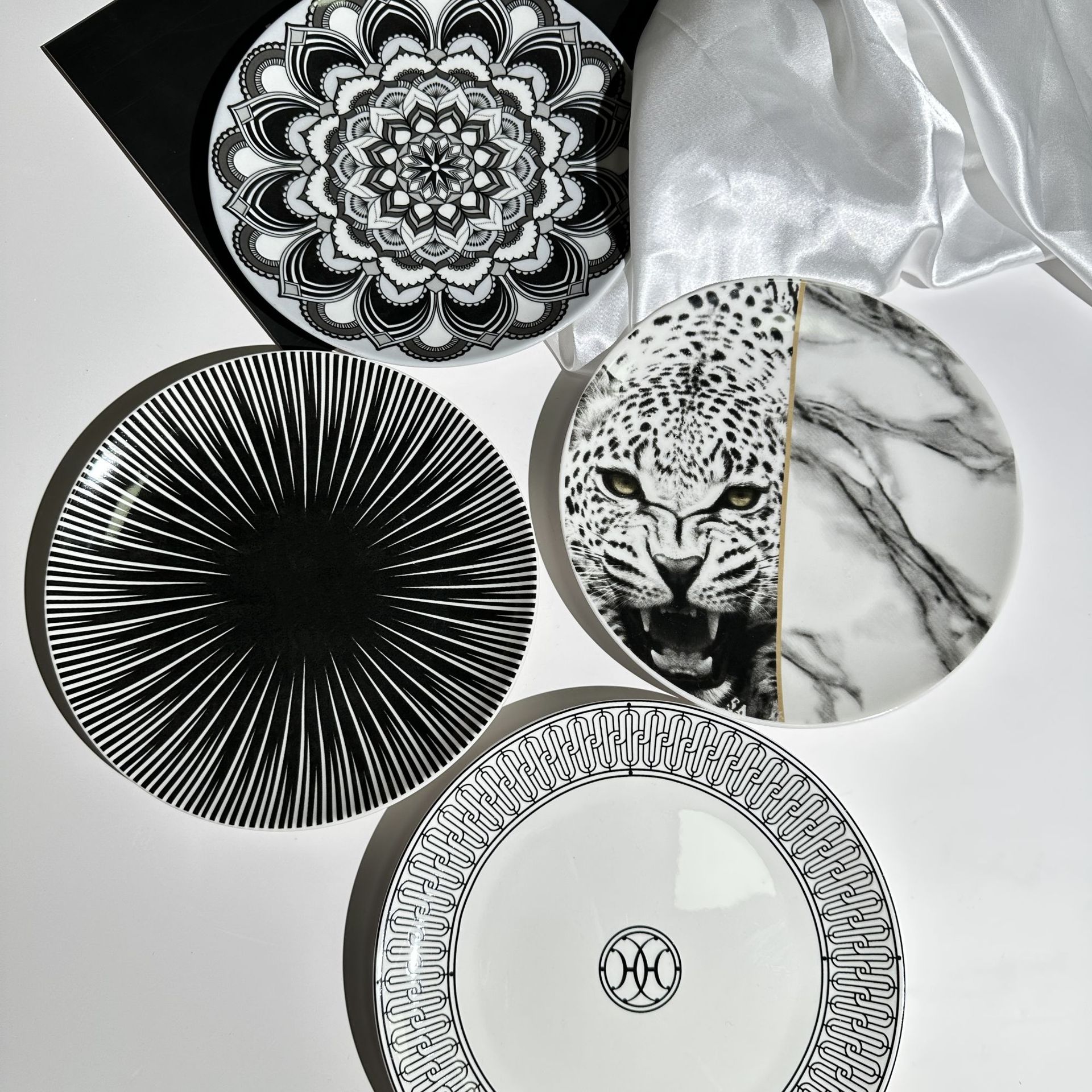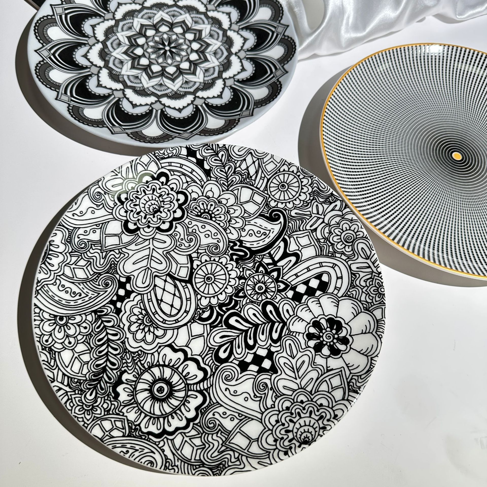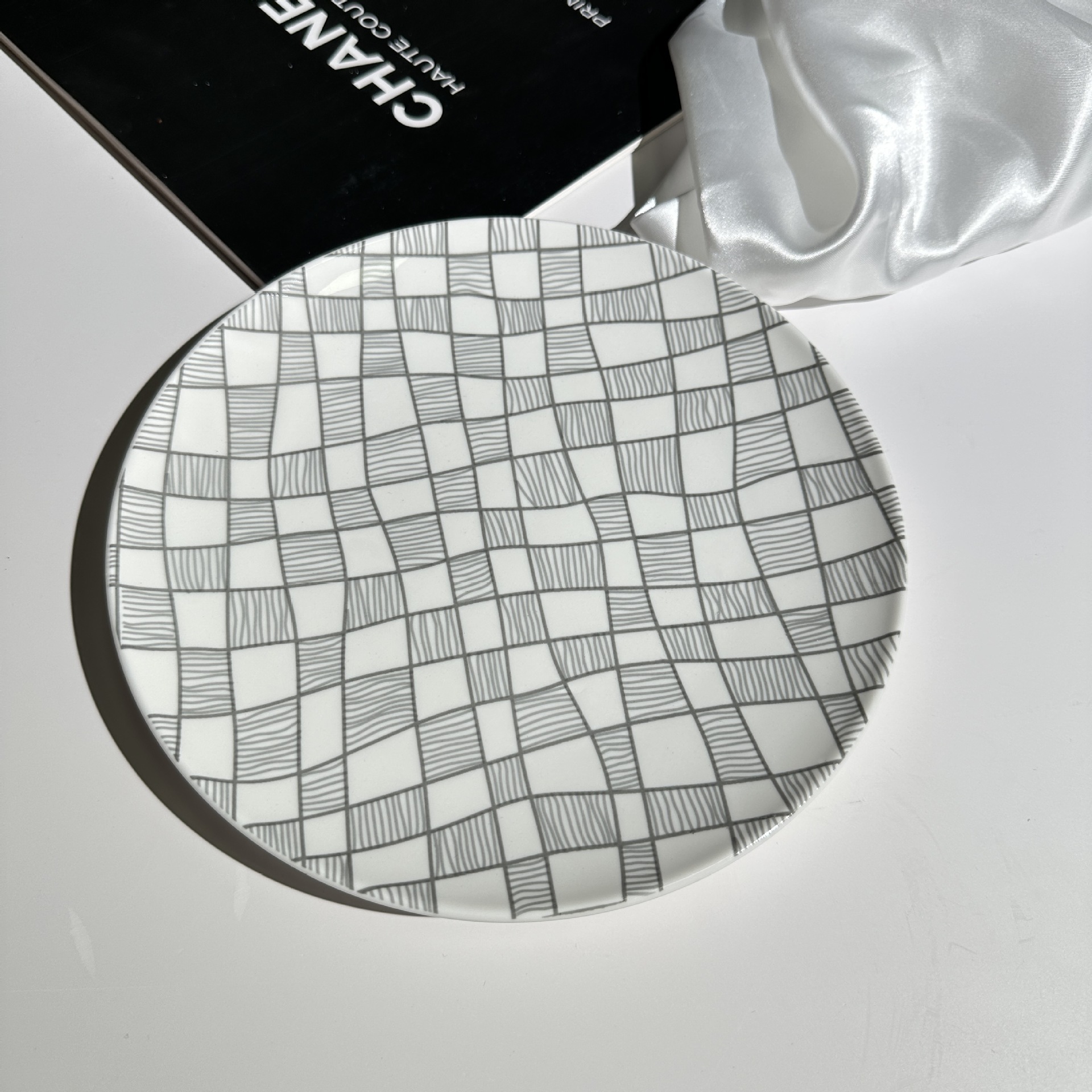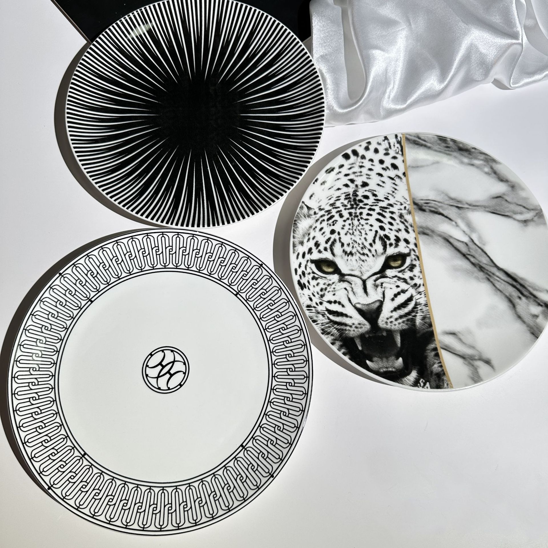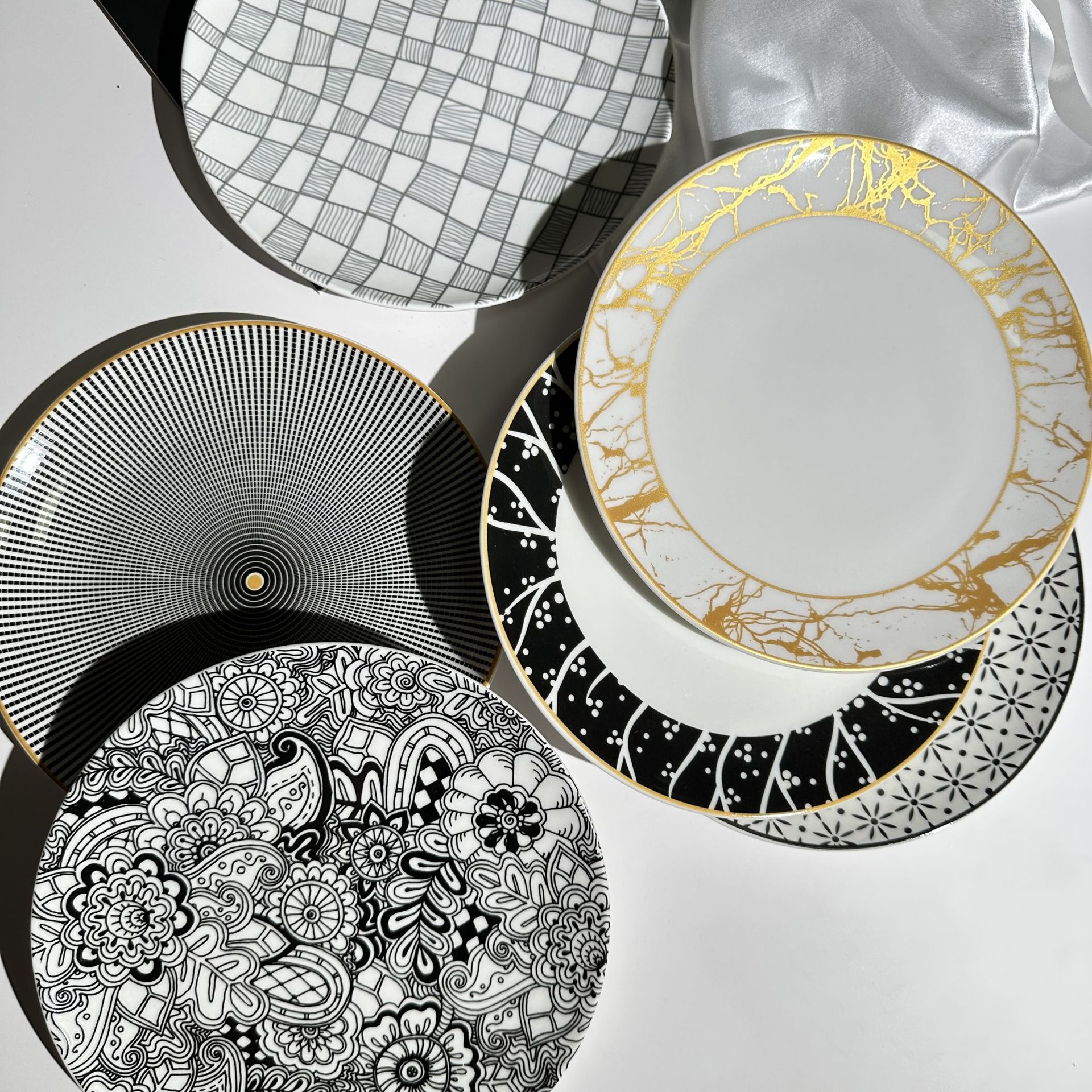 8inch 심플한 흑백 고급 멀티 패턴 유럽과 미국의 분위기 세라믹 만화 고온 환경 친화적인 그릇과 접시 식기
