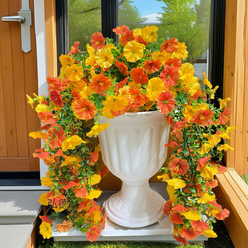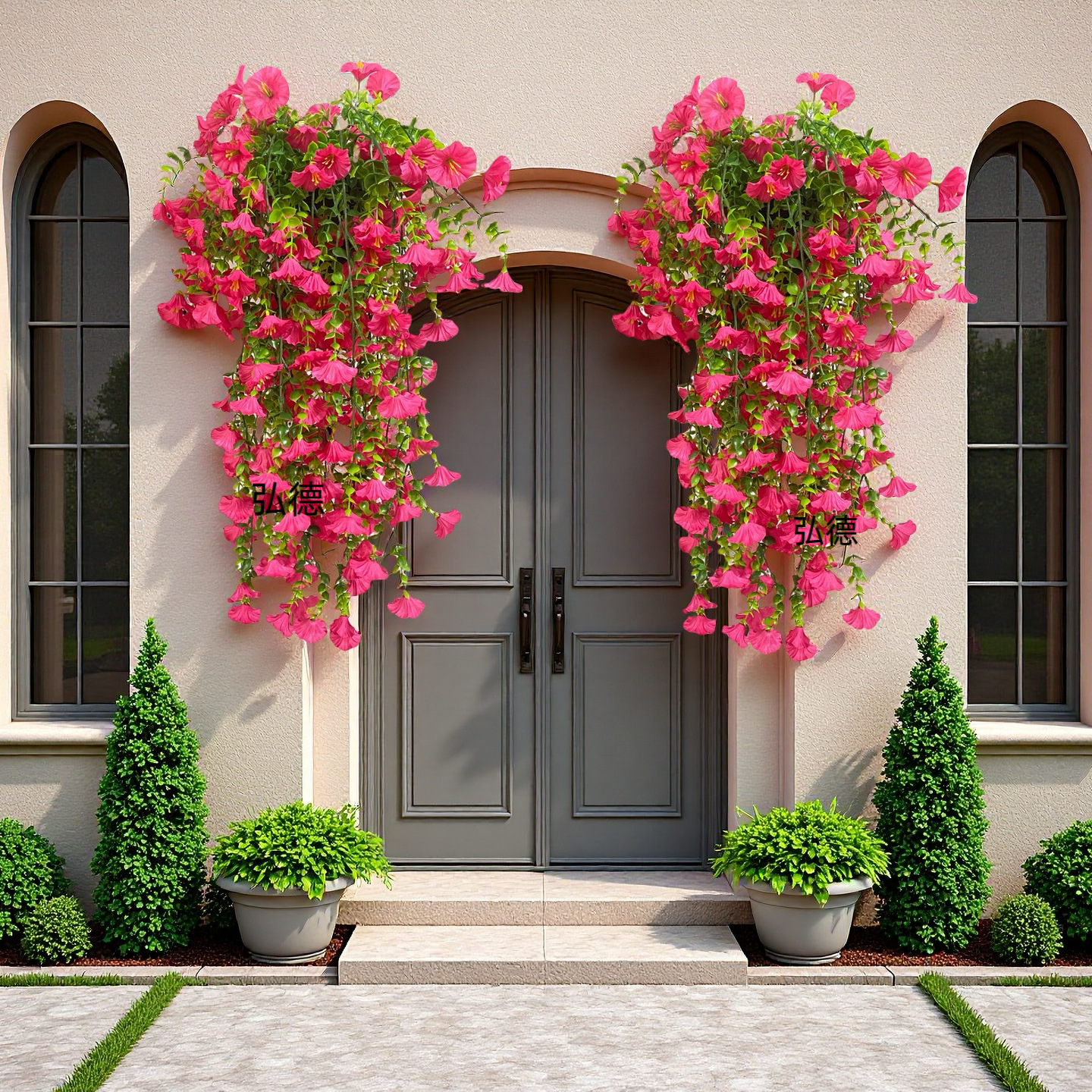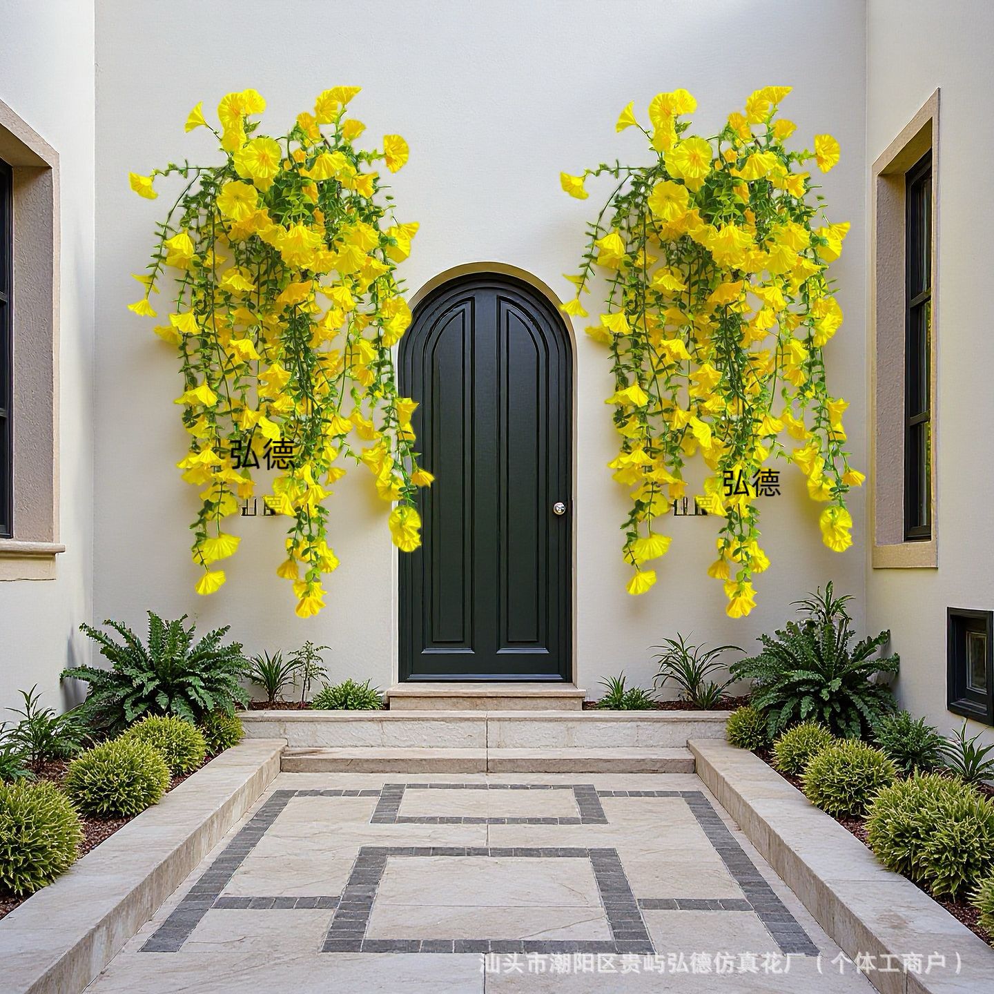 공장 재고 국경 인공 꽃 유칼립투스 나팔꽃 등나무 벽 매달려 실크 꽃 홈 웨딩 야외 정원 꽃