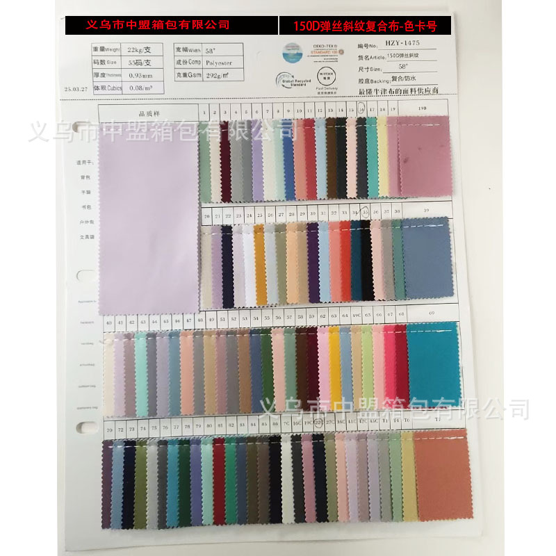 材质:150D弹丝斜纹复合布