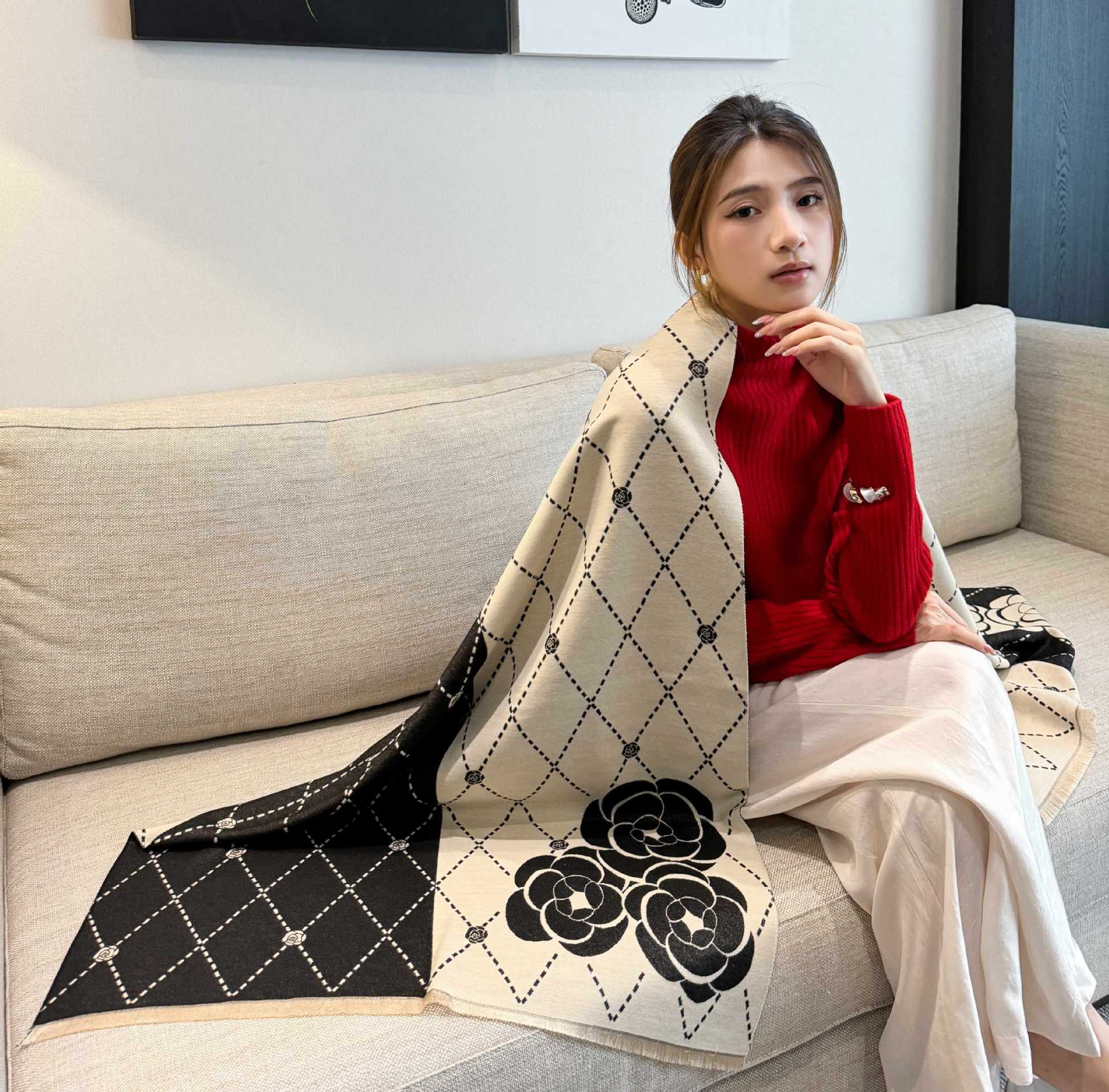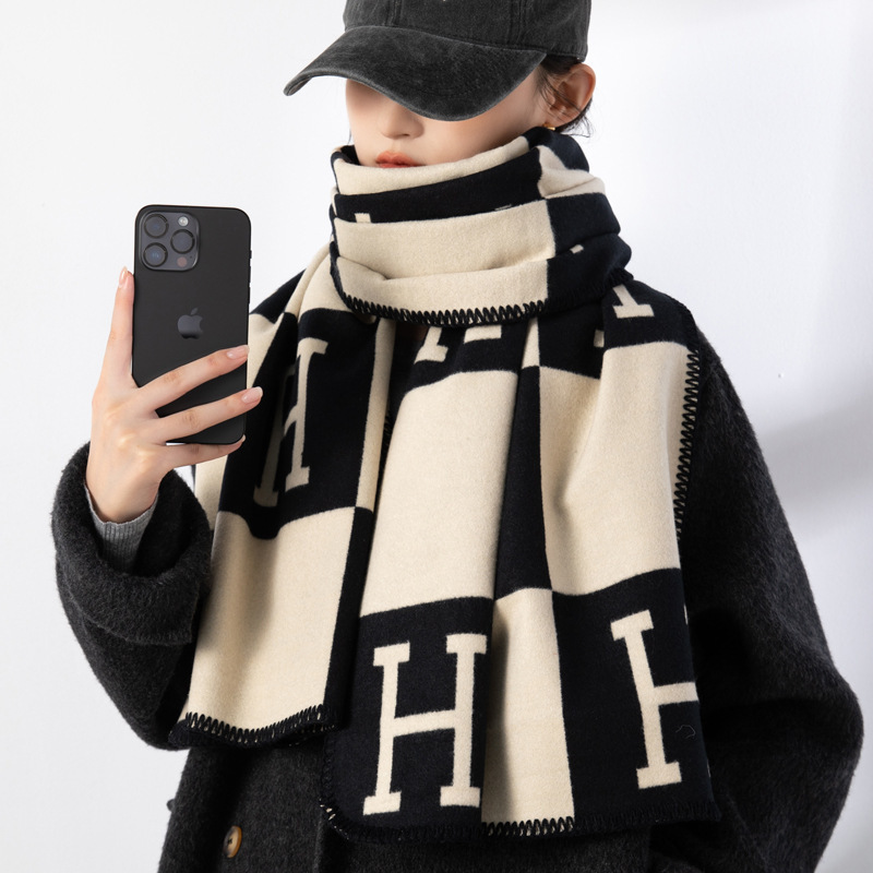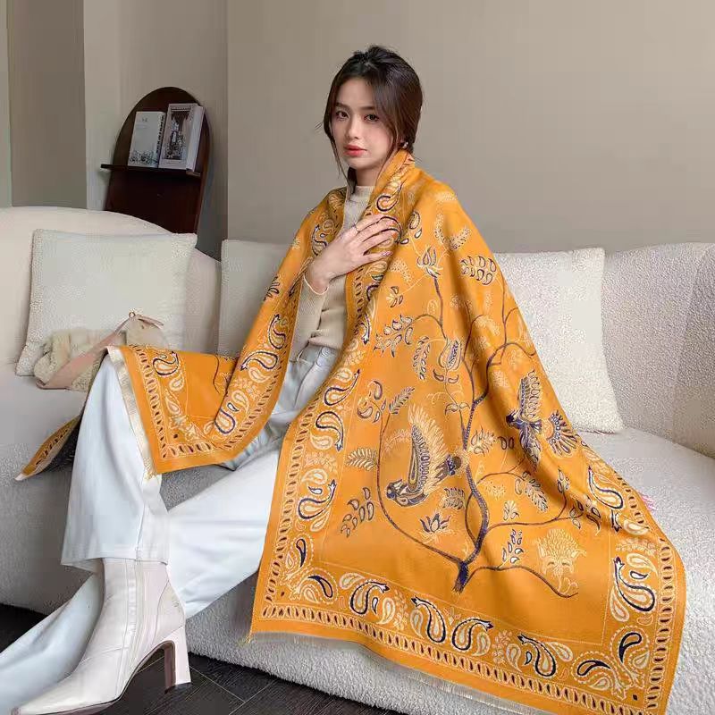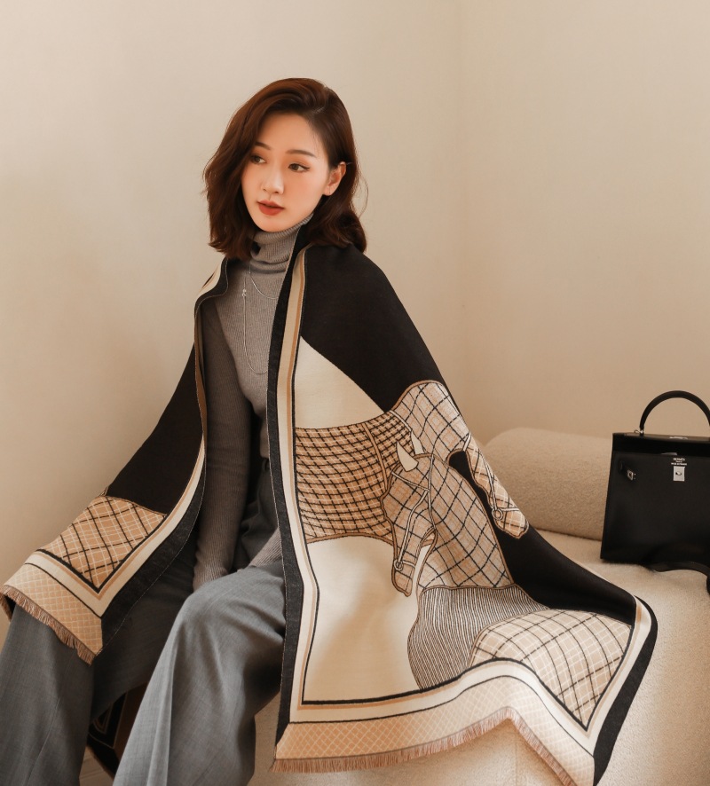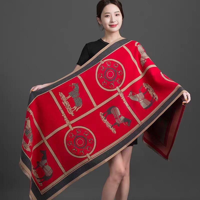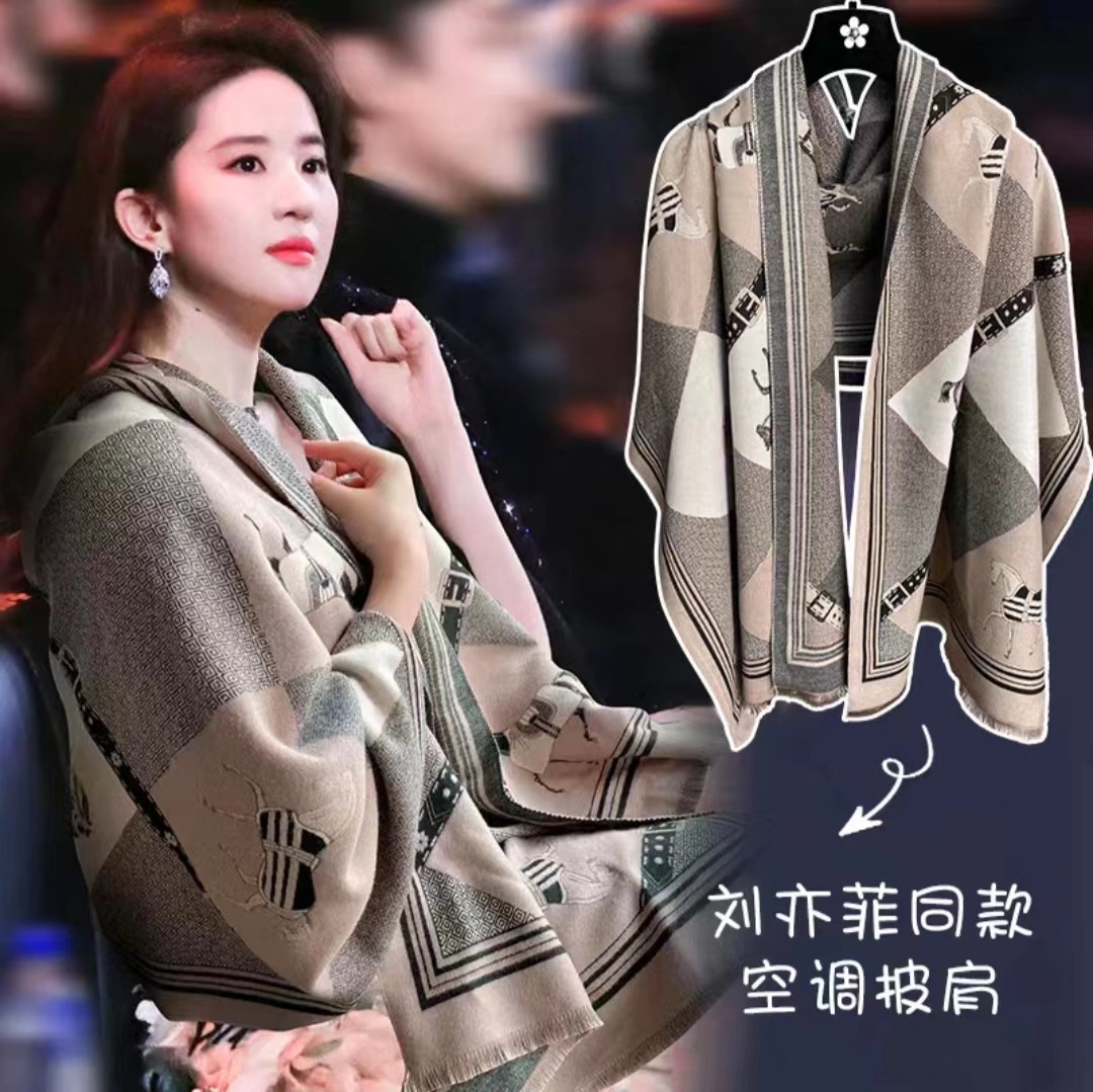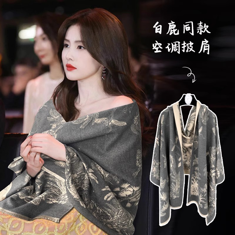 여성용 백호 같은 고급 캐시미어 스카프, 양면 2색 에어컨 룸 울 숄, 두꺼운 겉옷, 선물스토어 가기