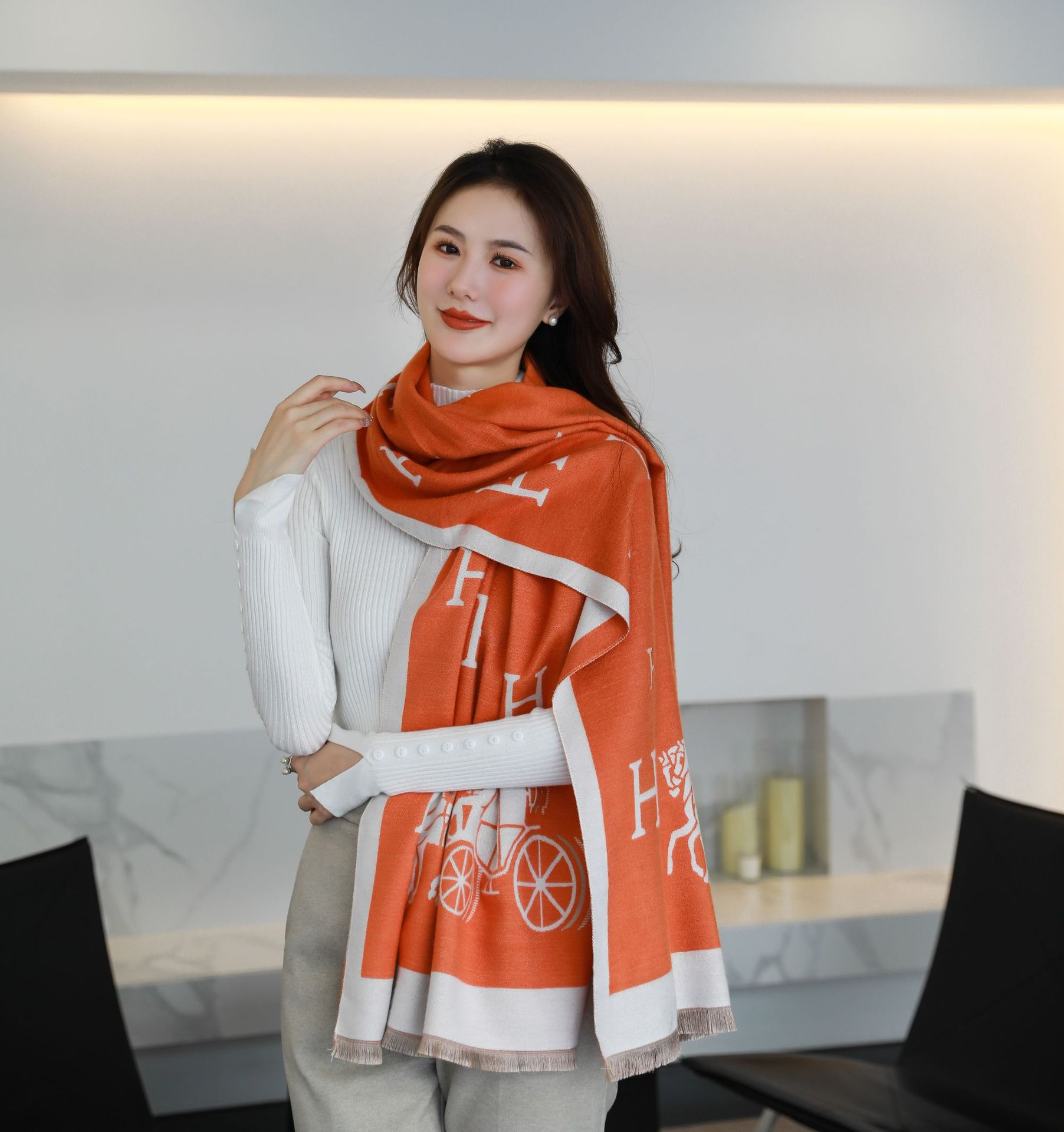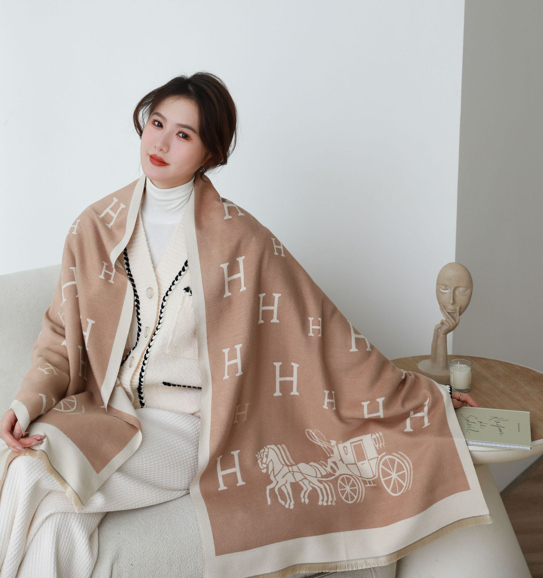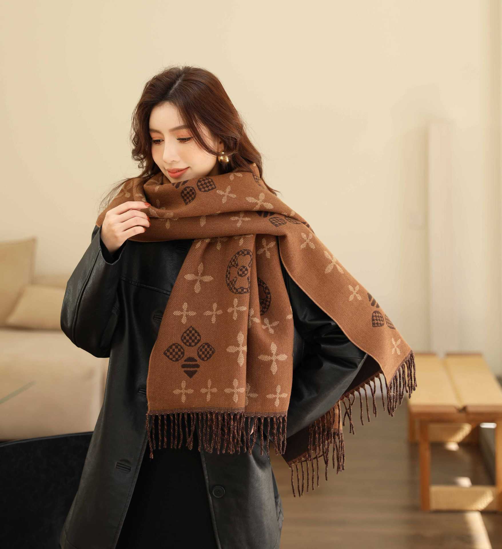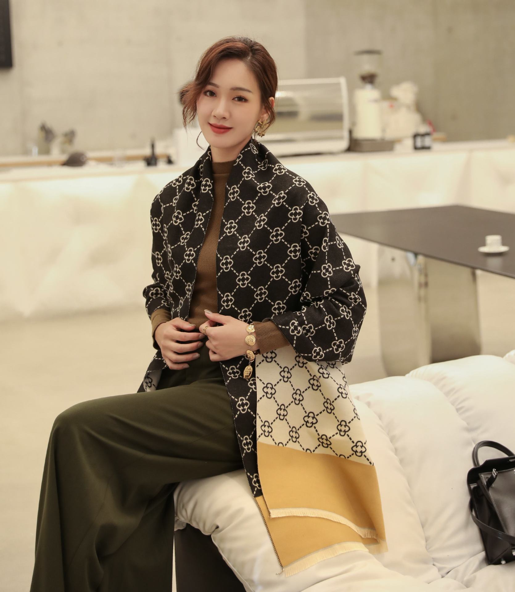 여성용 백호 같은 고급 캐시미어 스카프, 양면 2색 에어컨 룸 울 숄, 두꺼운 겉옷, 선물스토어 가기