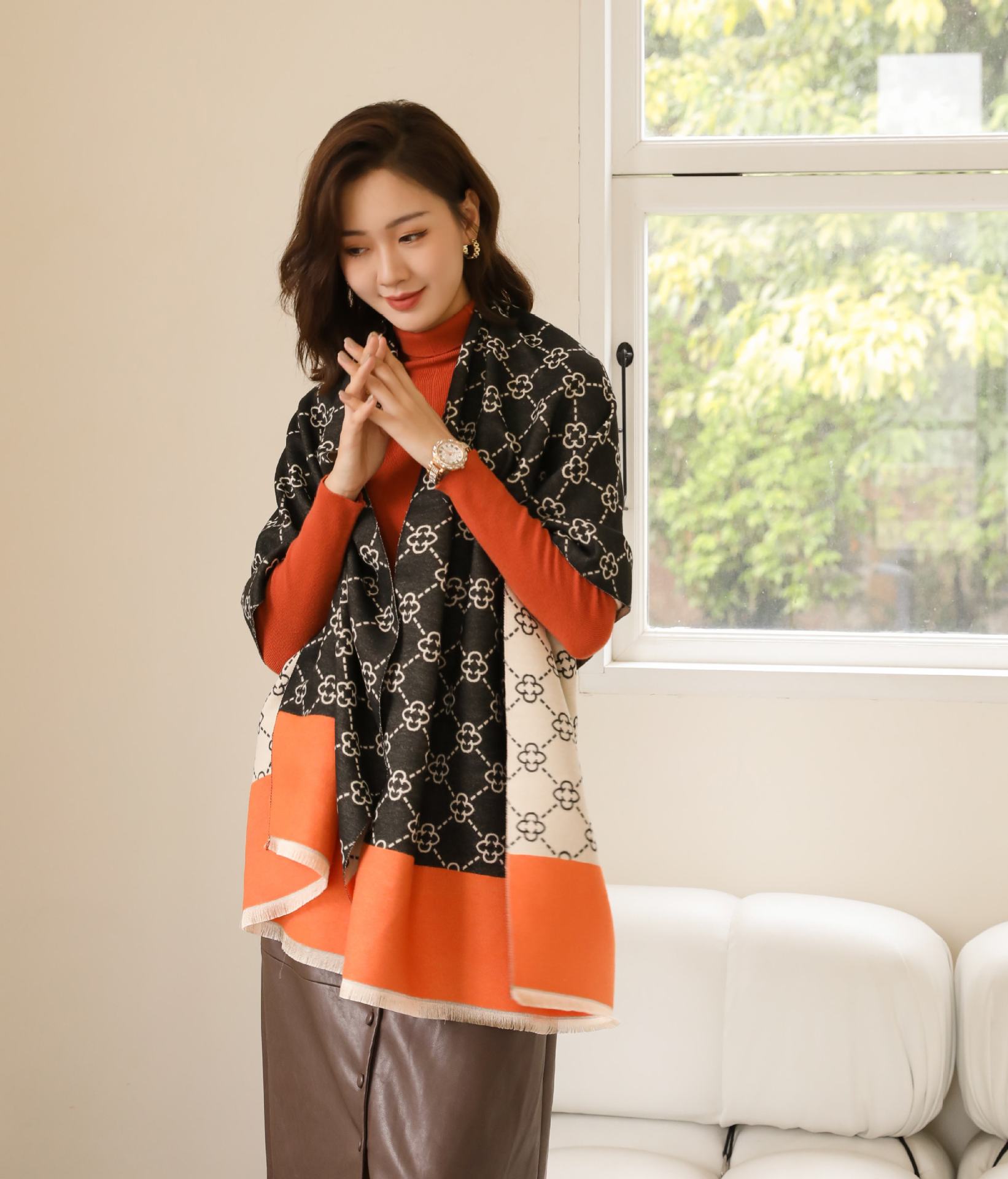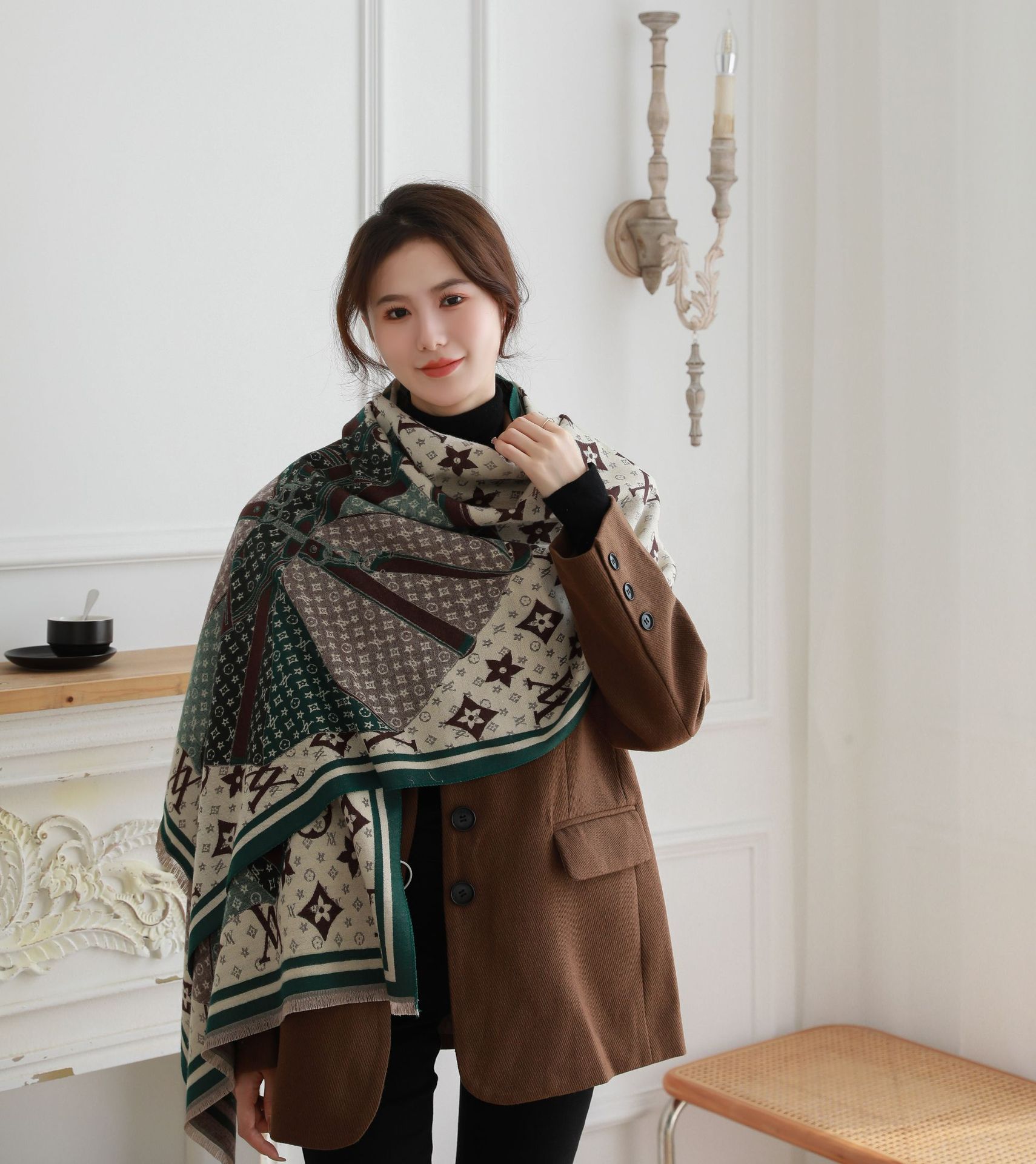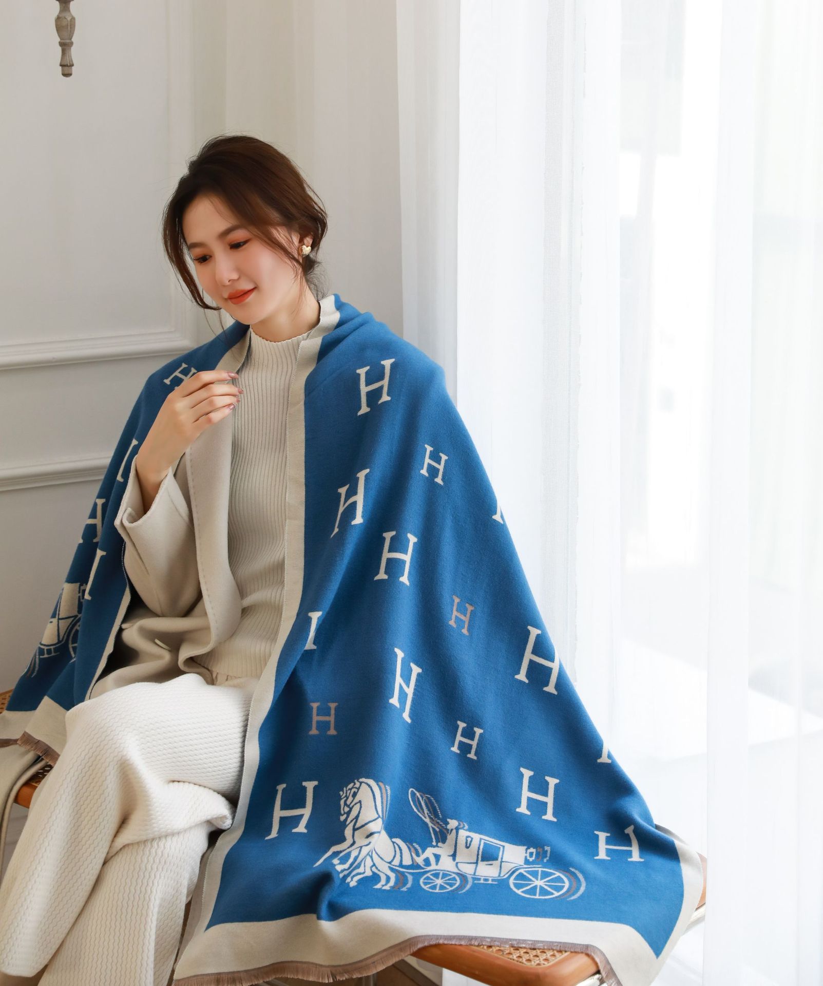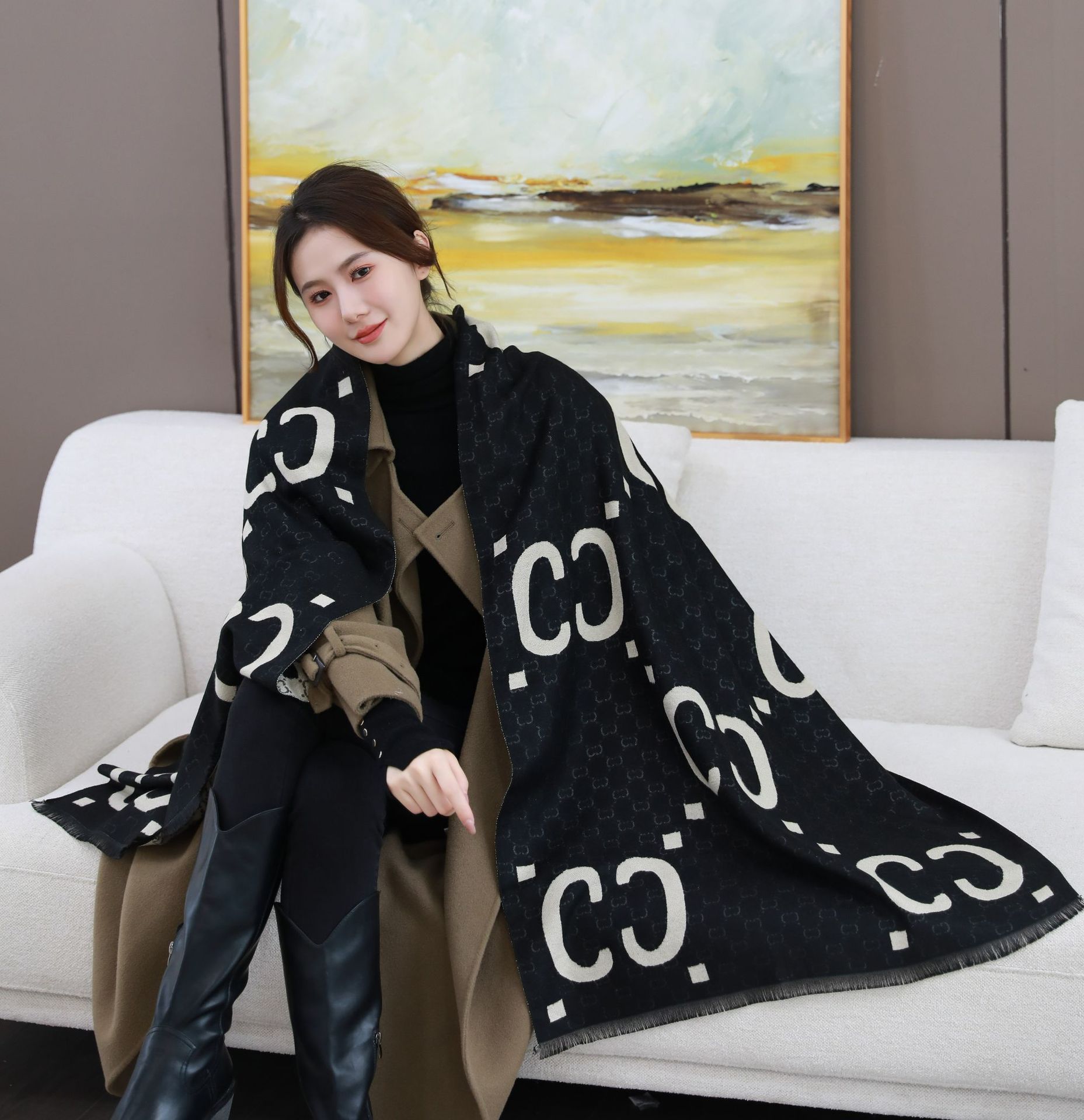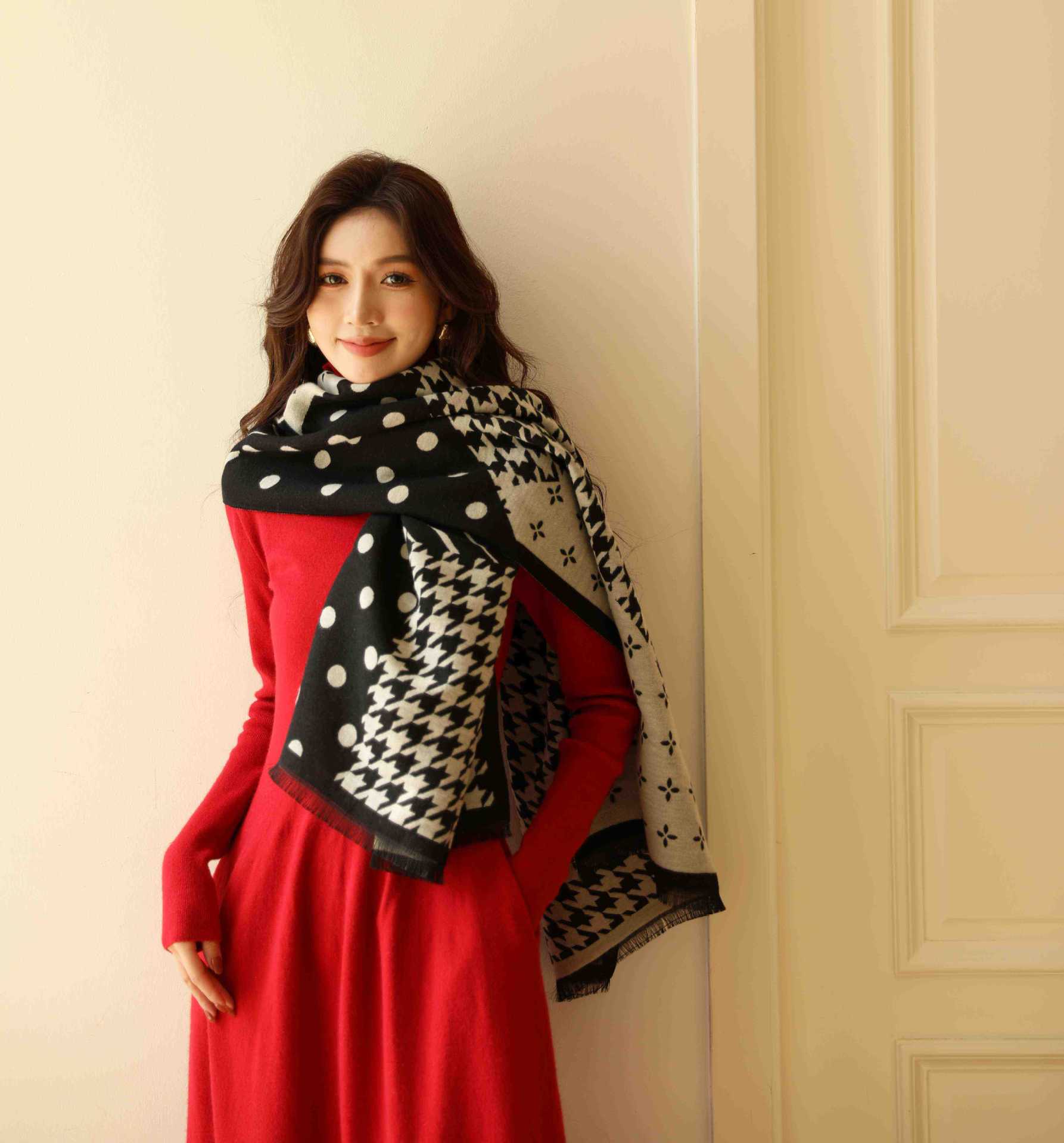 여성용 백호 같은 고급 캐시미어 스카프, 양면 2색 에어컨 룸 울 숄, 두꺼운 겉옷, 선물스토어 가기