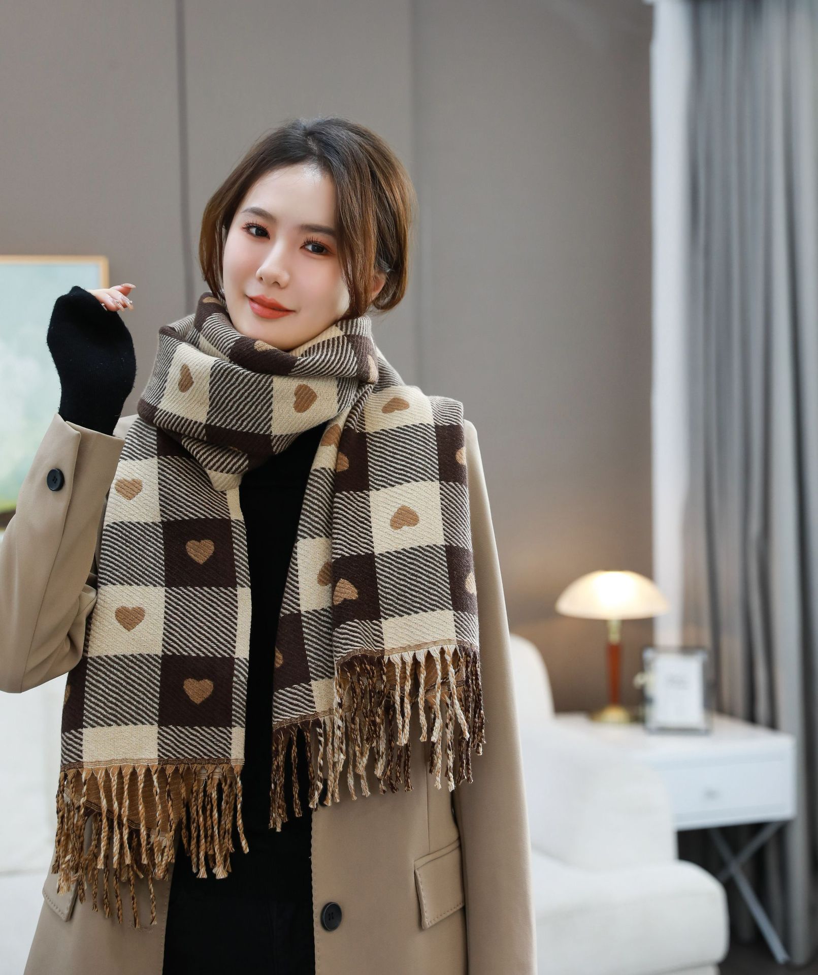 • 양면 체크 무늬 브라운