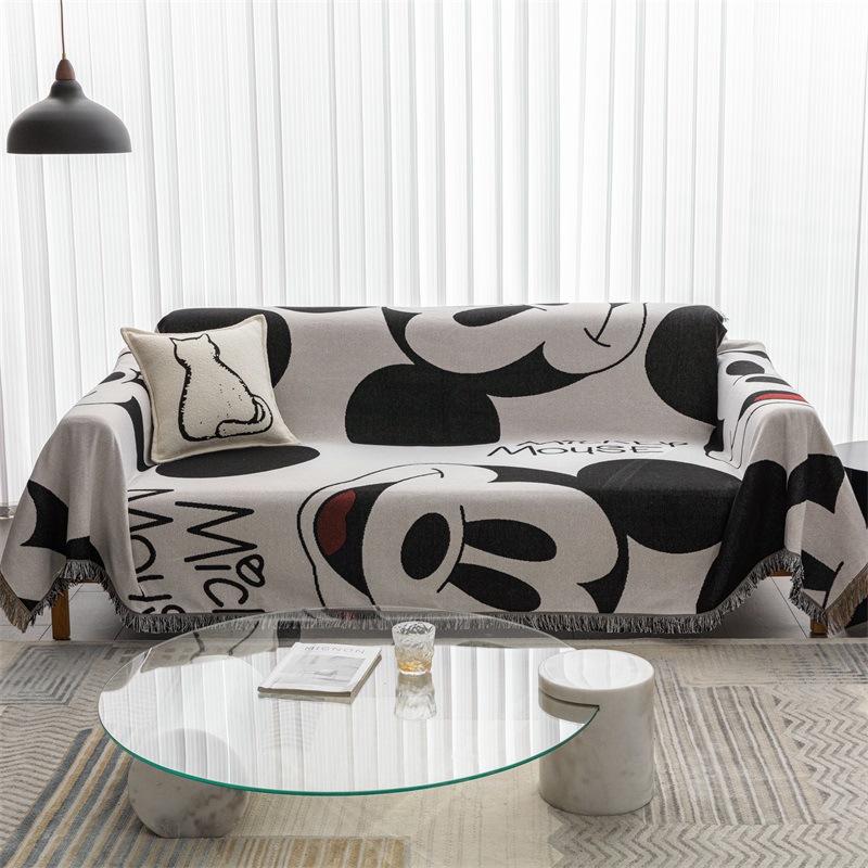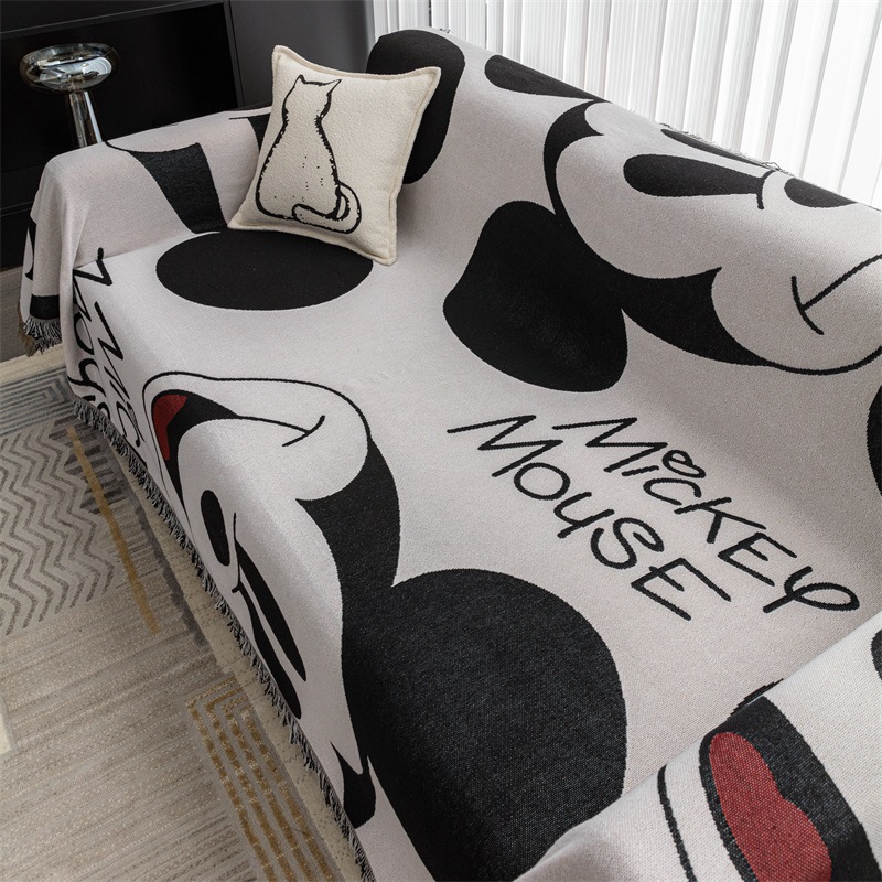 만화 귀여운 양면 소파 커버 사계절 풀 커버 코튼 스레드 장식 담요 양면 미키 소파 수건 쿠션