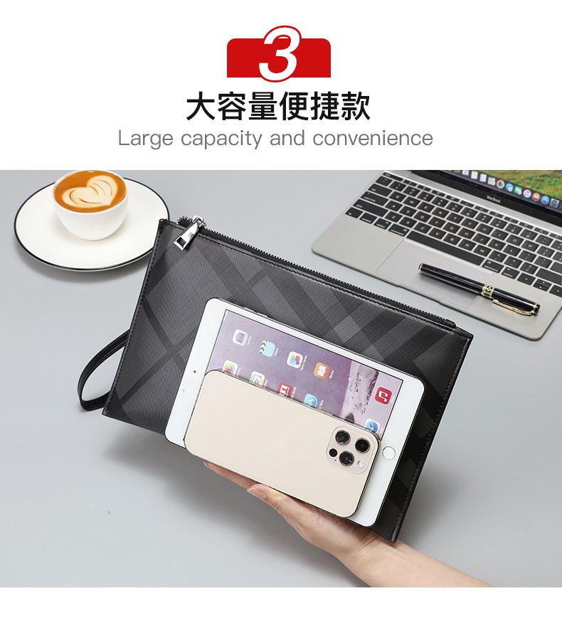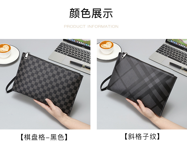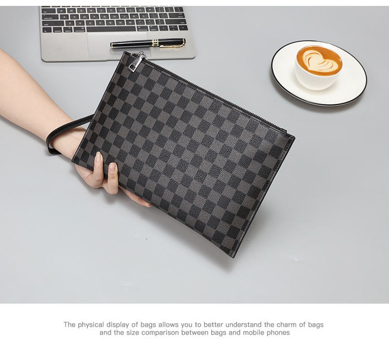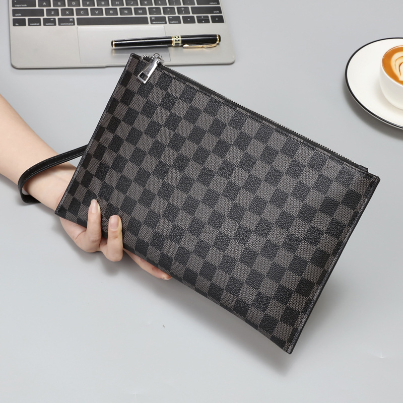 비즈니스 남성 클러치 백 패션 체커보드 패턴 핸드백 봉투 가방 캐주얼 다목적 클러치 남성용 지갑
