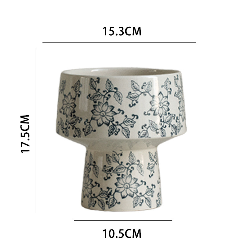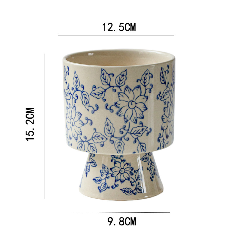 파란색과 흰색 도자기 패턴 호접란 세라믹 꽃 냄비 중국 스타일 인테리어 장식 빈티지 도자기 녹색 식물 꽃 유니버설 냄비