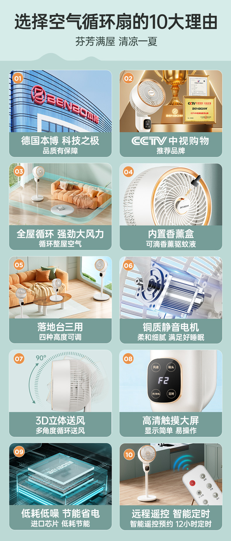 독일 벤보 공기 순환 팬 가구 침묵하는 작은 데스크톱 바닥 팬 수직 사무실 팬스토어 가기