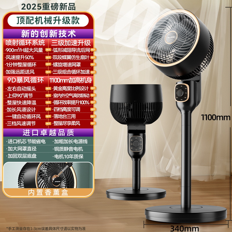 • 최고급 기계 업그레이드 모델/블랙 [확대 그릴, 자동 쉐이킹 헤드] 수입 무브먼트 + 900m/H 초대형 풍량 + 강력한 강풍 + 집 전체 순환 + 플로어 스탠딩