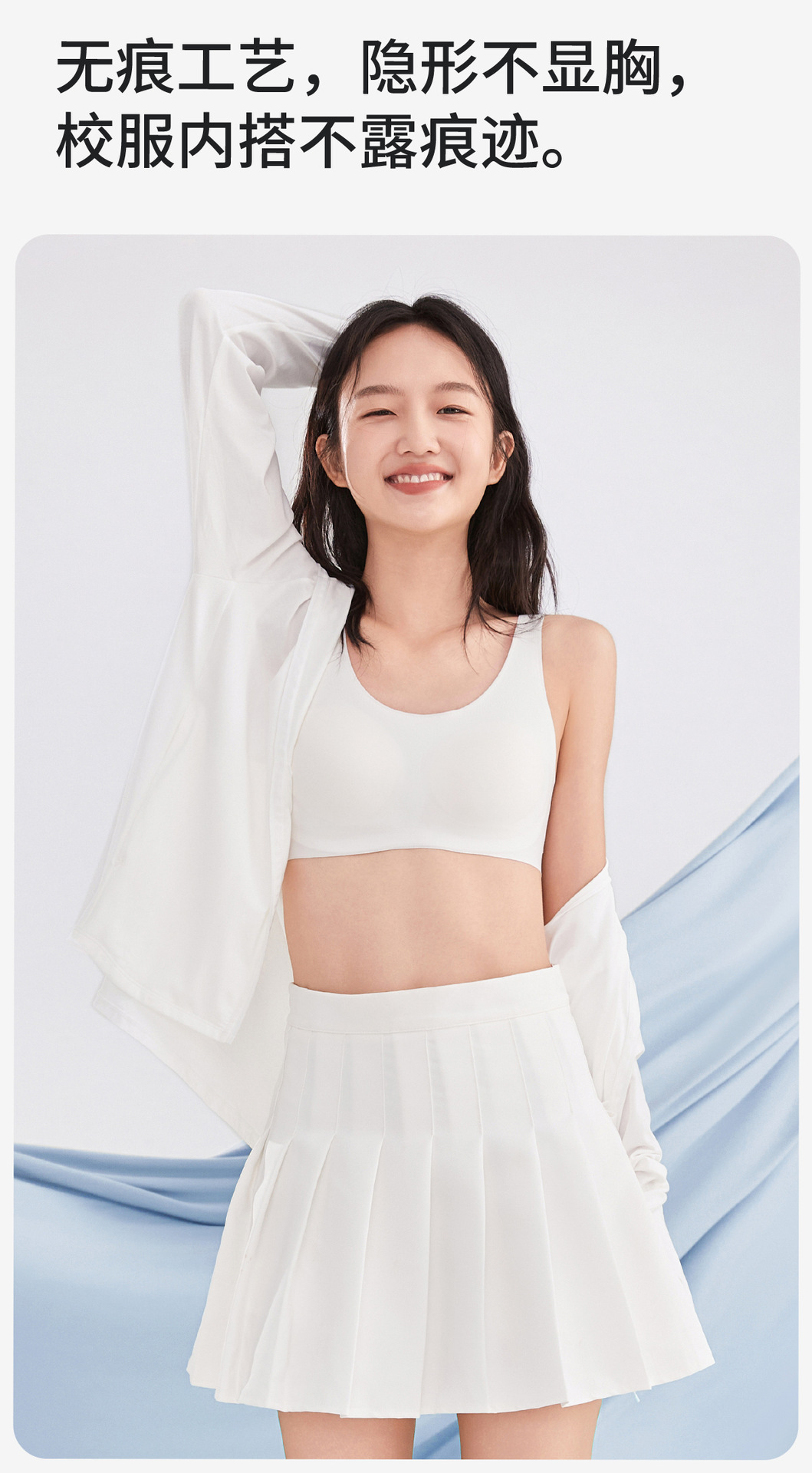 2 단계 개발 기간 소녀 브라 아이스 실크 원활한 중학교 속옷 2025 새로운 고정 컵 조끼스토어 가기