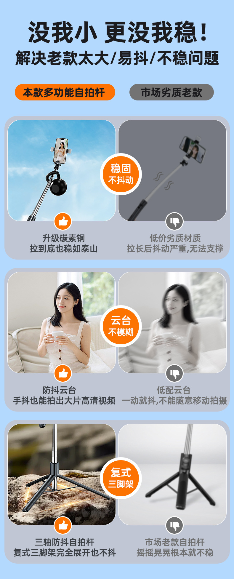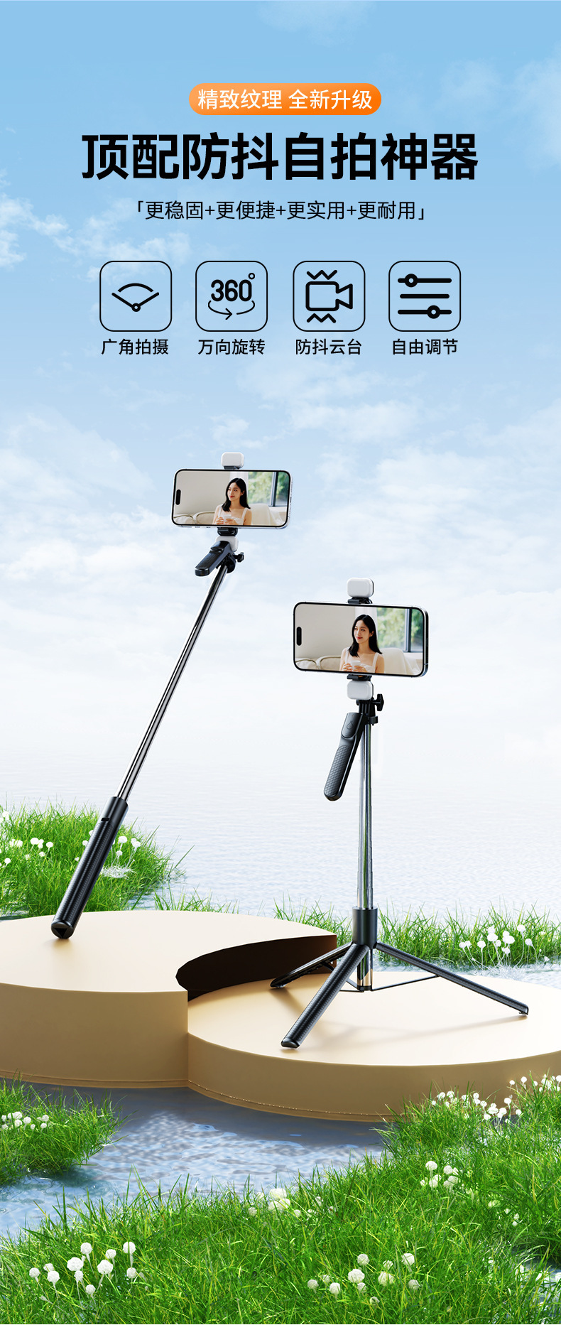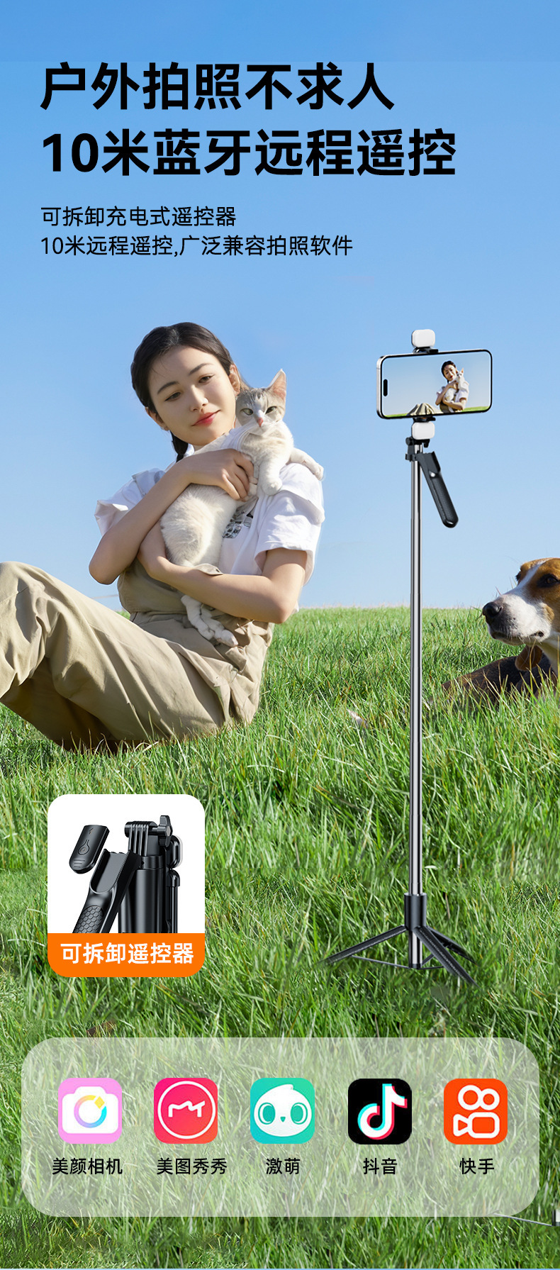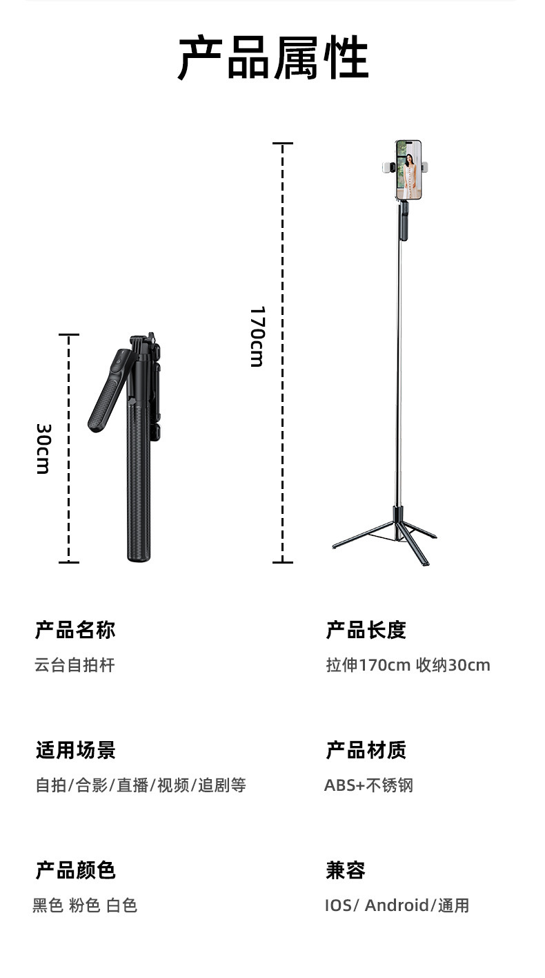Z2 블루투스 셀카봉 1.7m 손떨림 방지 손잡이 포함 접이식 휴대용 스탠드 휴대용 셀카봉스토어 가기
