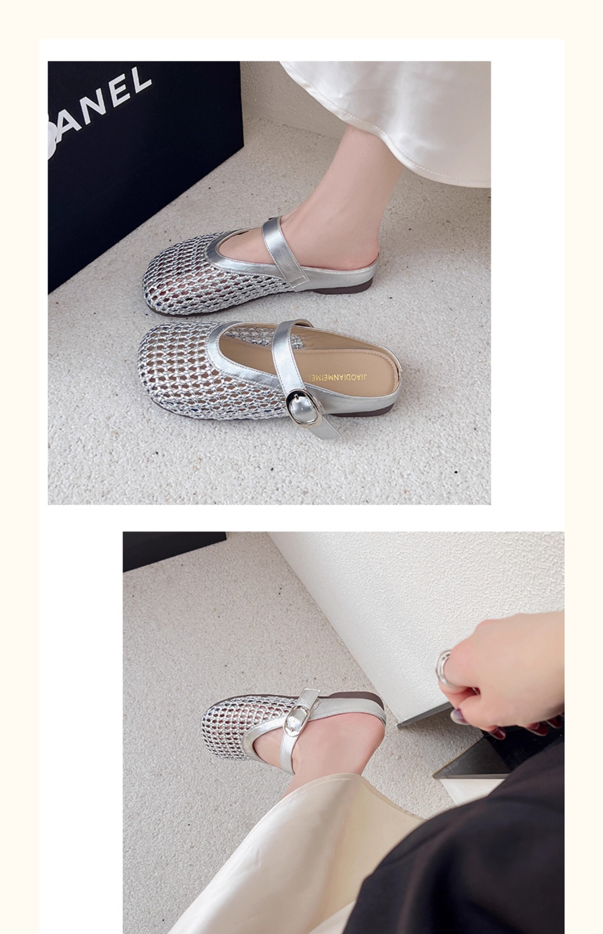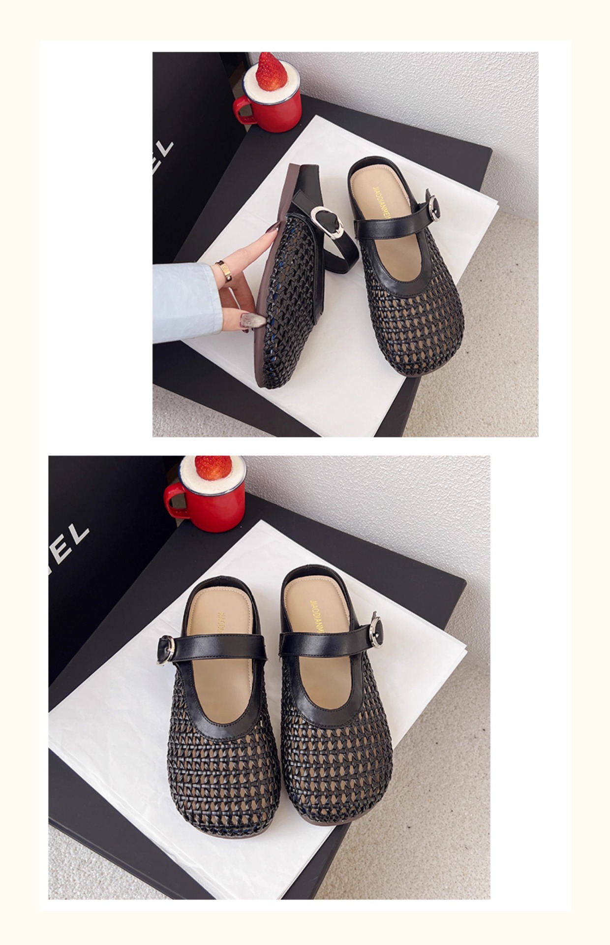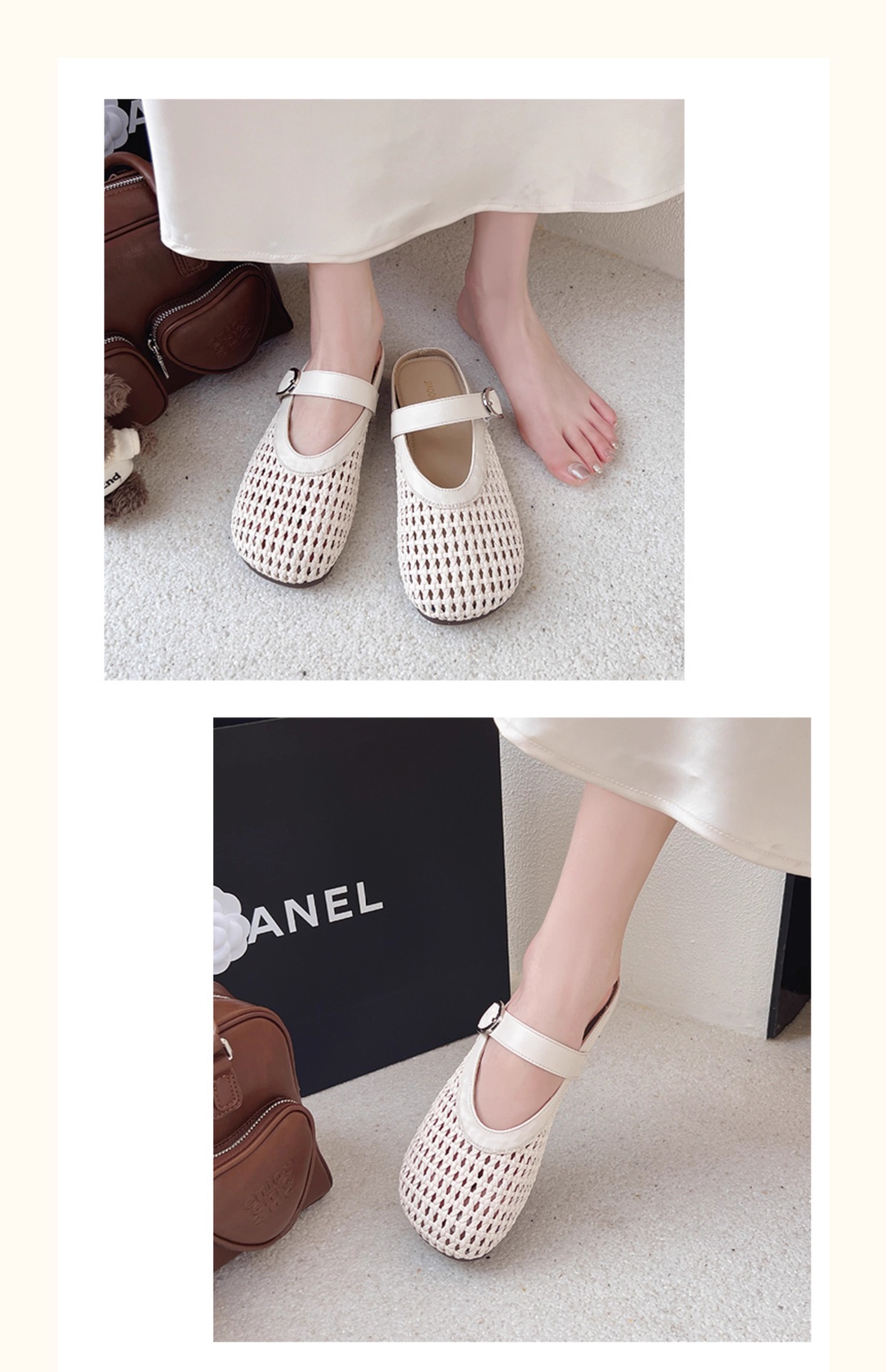 부드러운 가죽 버전 ~ 여성용 바오터우 하프 슬리퍼, 패셔너블한 중공 우븐 메쉬 로만 보켄 여성용 샌들