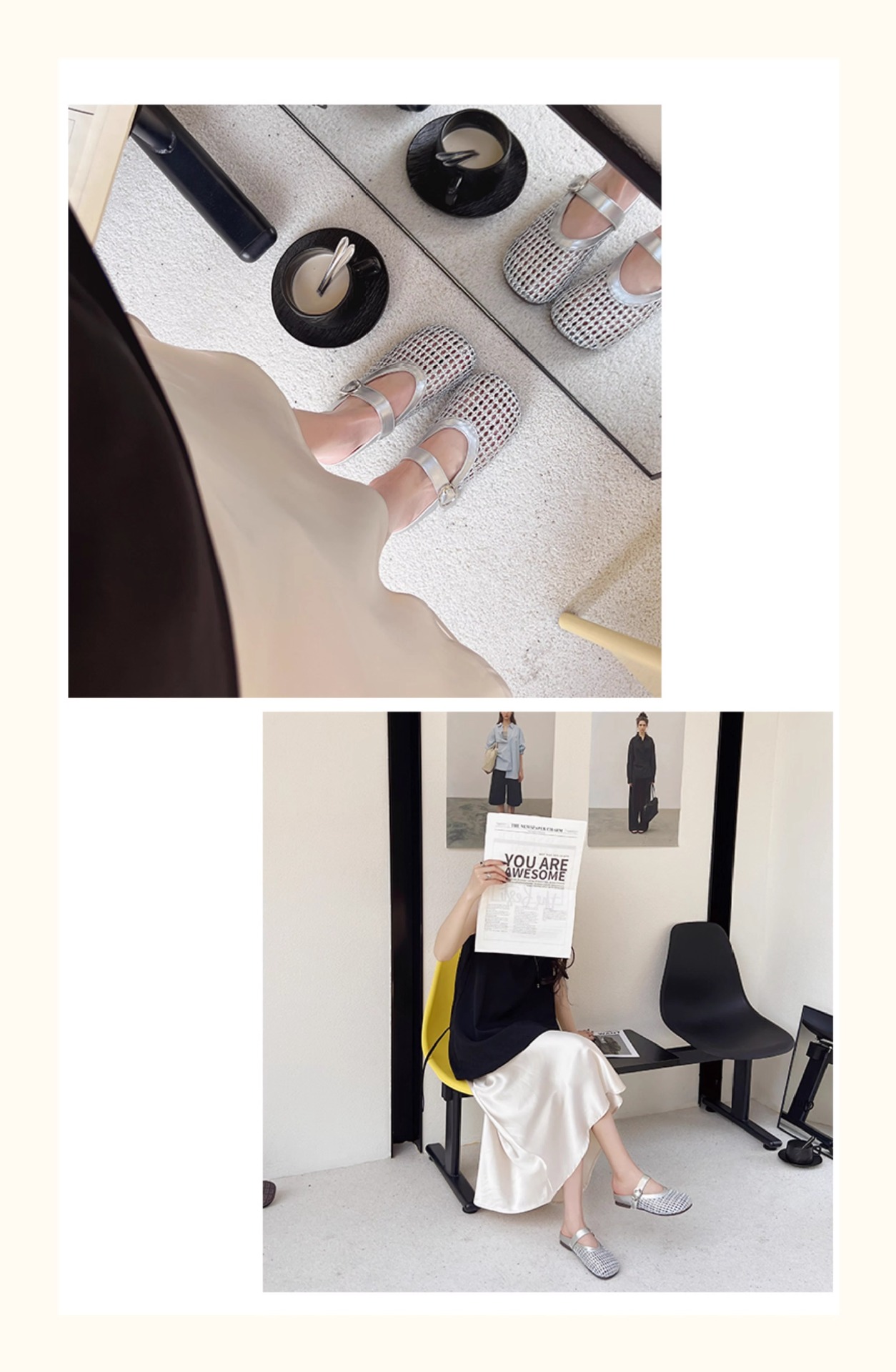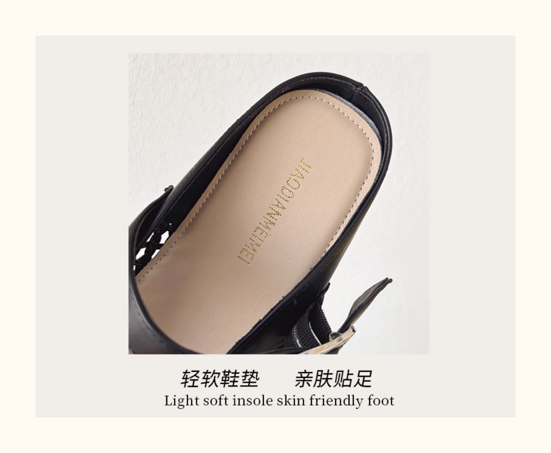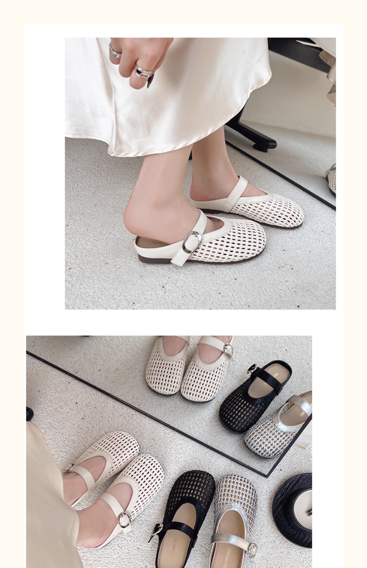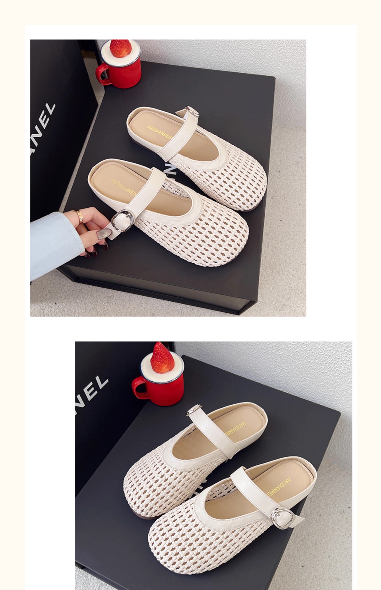 부드러운 가죽 버전 ~ 여성용 바오터우 하프 슬리퍼, 패셔너블한 중공 우븐 메쉬 로만 보켄 여성용 샌들
