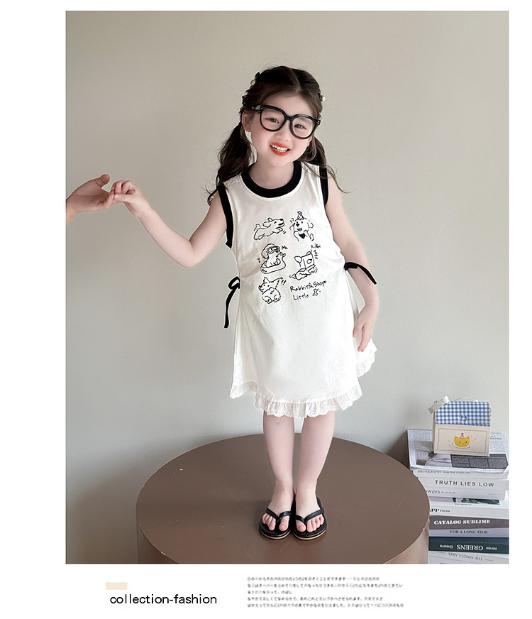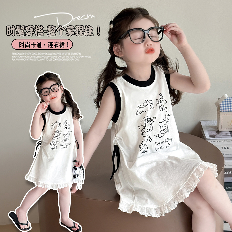 여자 여름 드레스 2025 새로운 어린이 조끼 드레스 만화 스타일 아기 여름 캐주얼 얇은 스커트