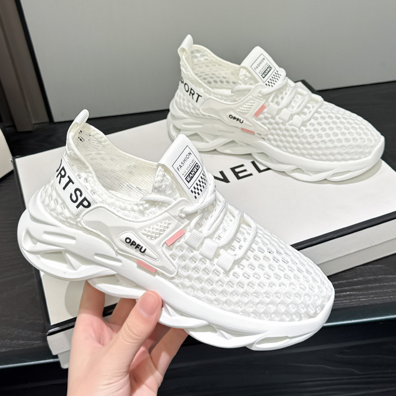 여성 신발 여름 플라이 니트 운동화 여성 통기성 캐주얼 학생 한국식 Ins 올매치 트렌디 화이트 슈즈 런닝 슈즈