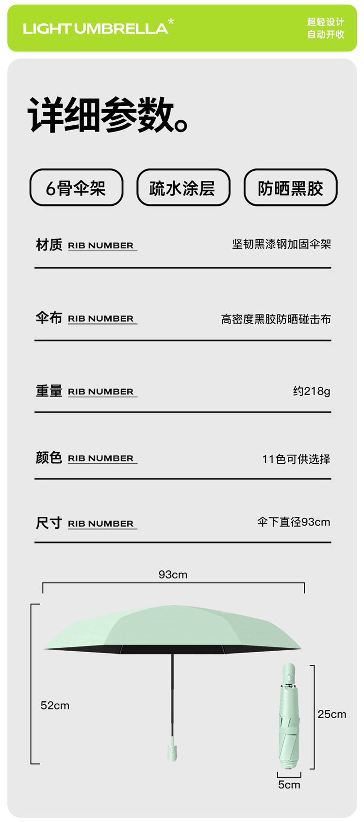 • 말차 그린 삼중 6본 전자동 초경량 우산