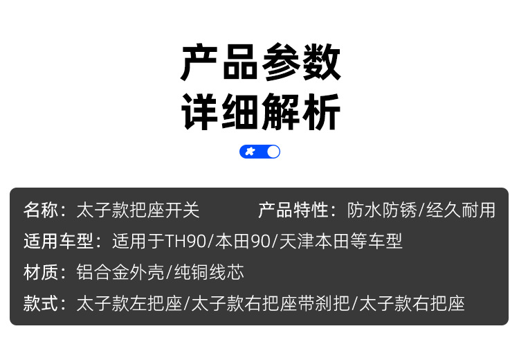 Jinpeng 전기 삼륜차 시트 스위치, 프린스 모델 핸들바, 브레이크 경적, 헤드라이트, 좌우 방향 지시등 어셈블리스토어 가기