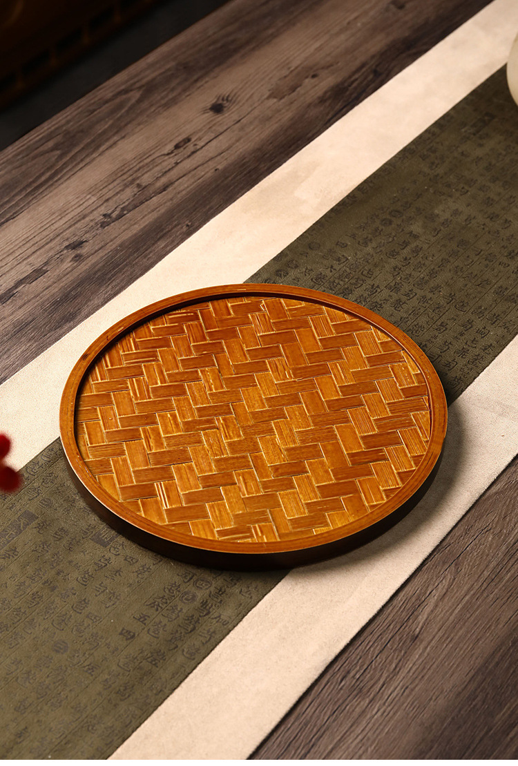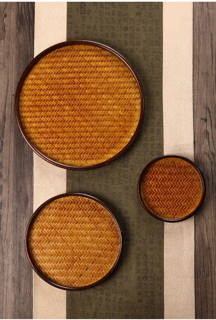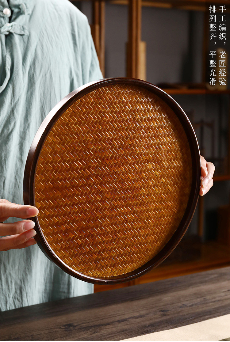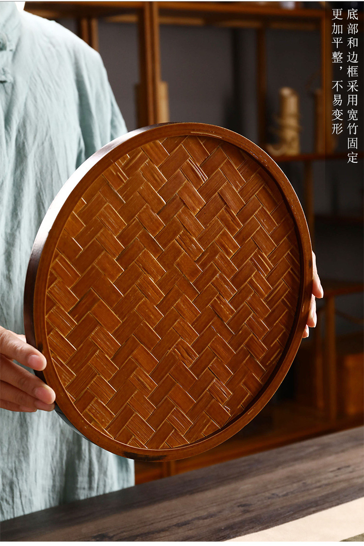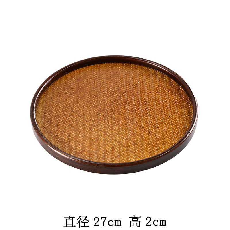 대나무 제품 단단한 나무 차 트레이 손으로 짠 대나무 매트 차 트레이 가정용 차 세트 다도 커피 테이블 말린 과일 보관함스토어 가기