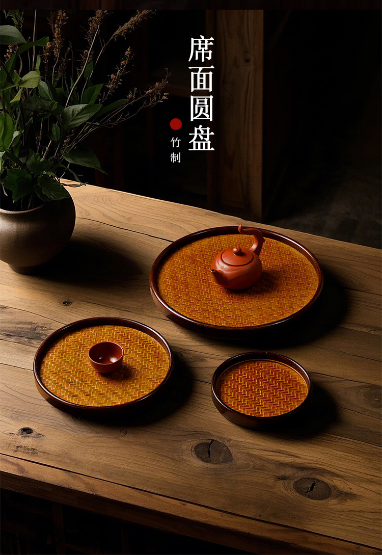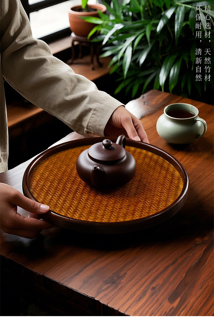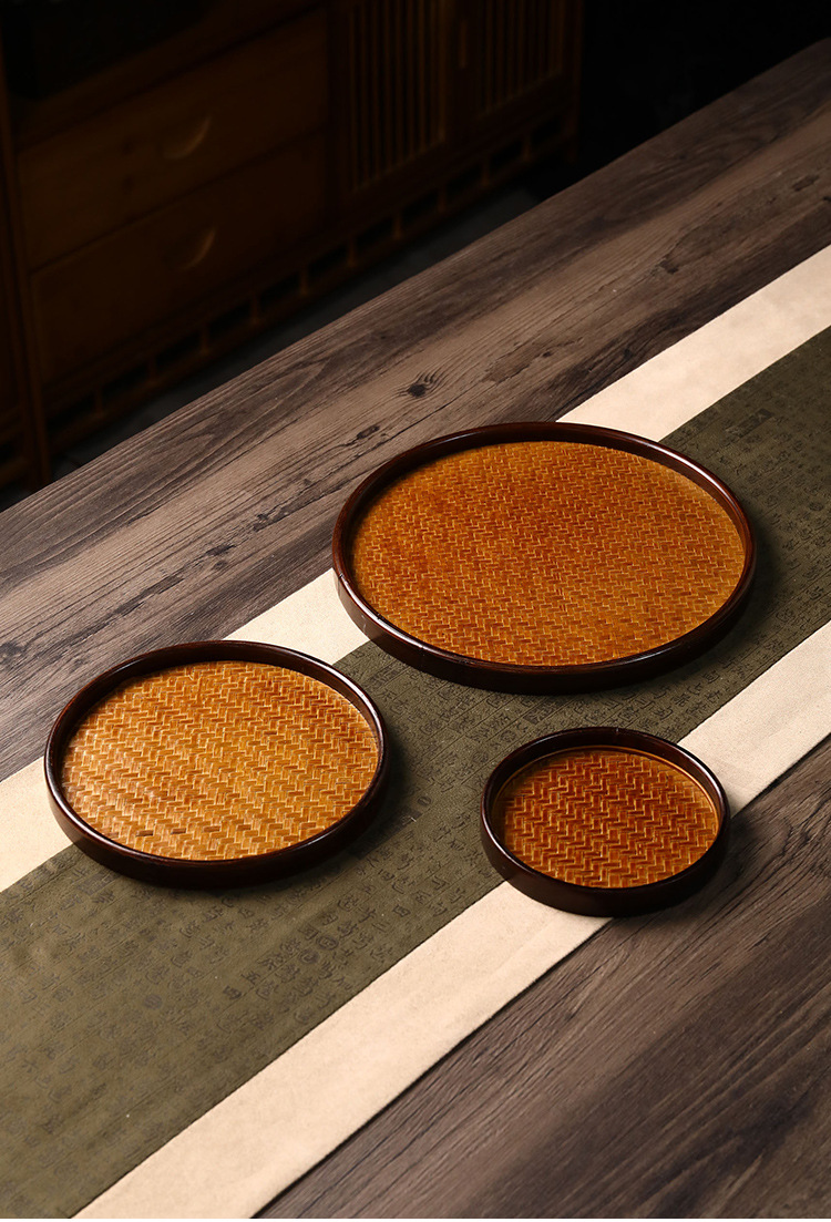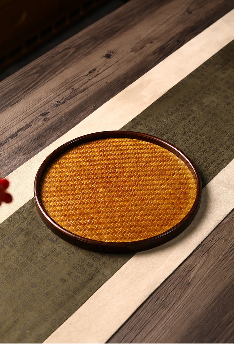 대나무 제품 단단한 나무 차 트레이 손으로 짠 대나무 매트 차 트레이 가정용 차 세트 다도 커피 테이블 말린 과일 보관함스토어 가기