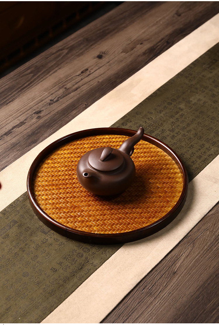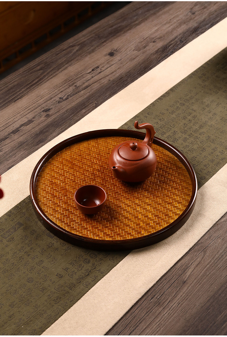대나무 제품 단단한 나무 차 트레이 손으로 짠 대나무 매트 차 트레이 가정용 차 세트 다도 커피 테이블 말린 과일 보관함