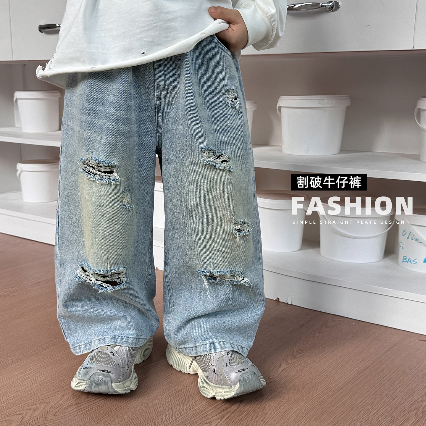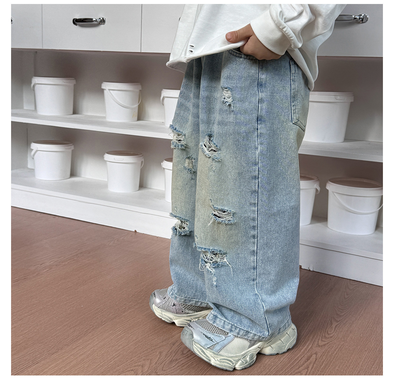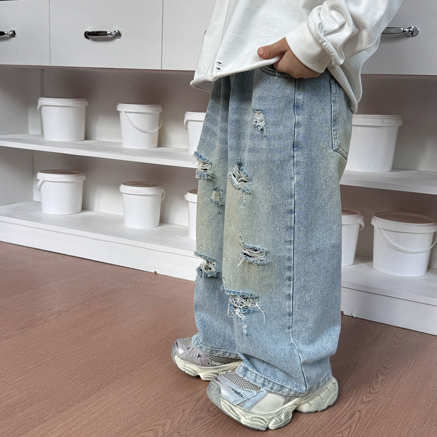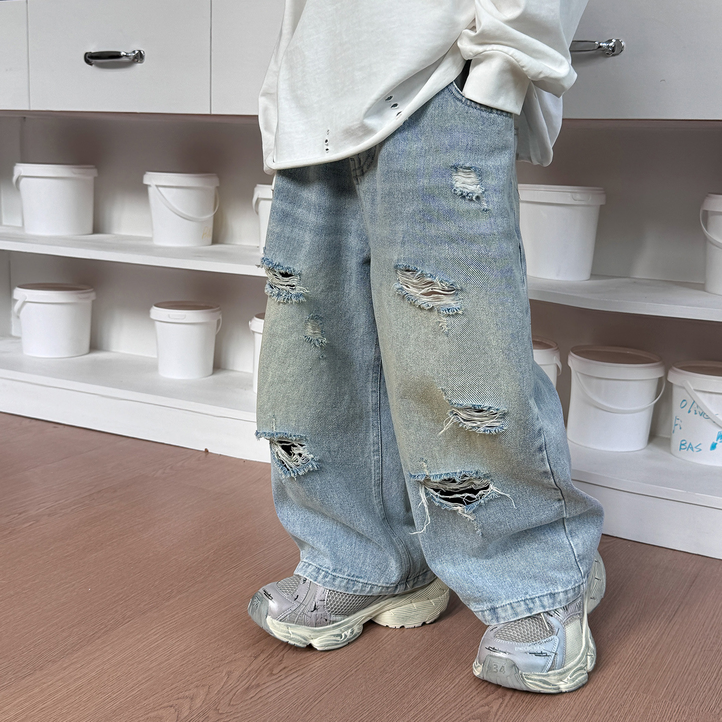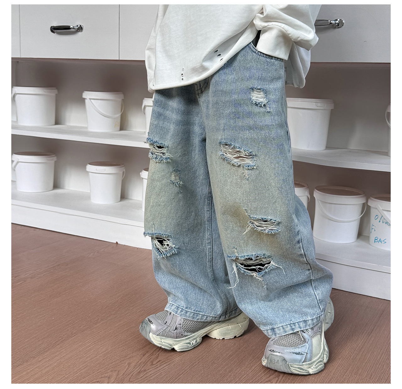 노란 진흙 찢어진 청바지 봄 여름 가을 소년 미국 복고풍 클린 핏 하이 스트리트 마이크로 스트레이트 트렌디 바지스토어 가기