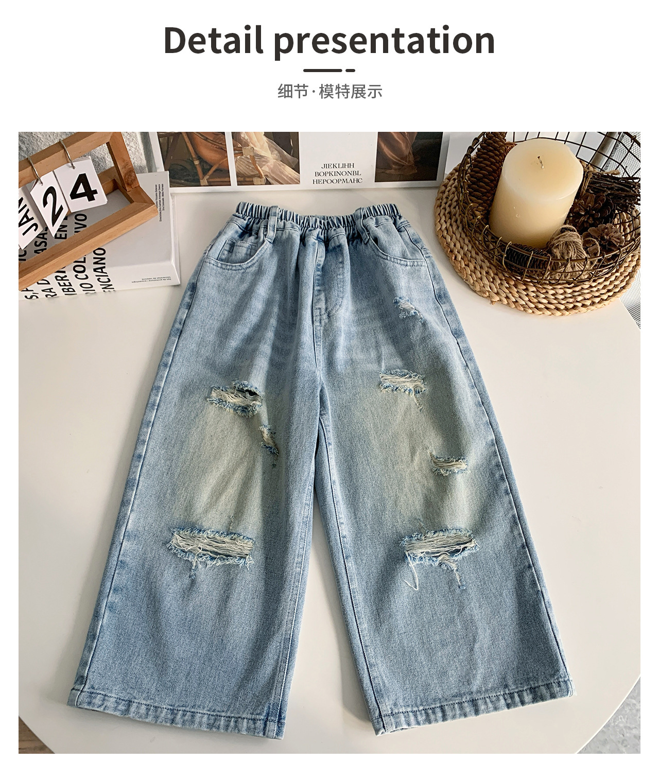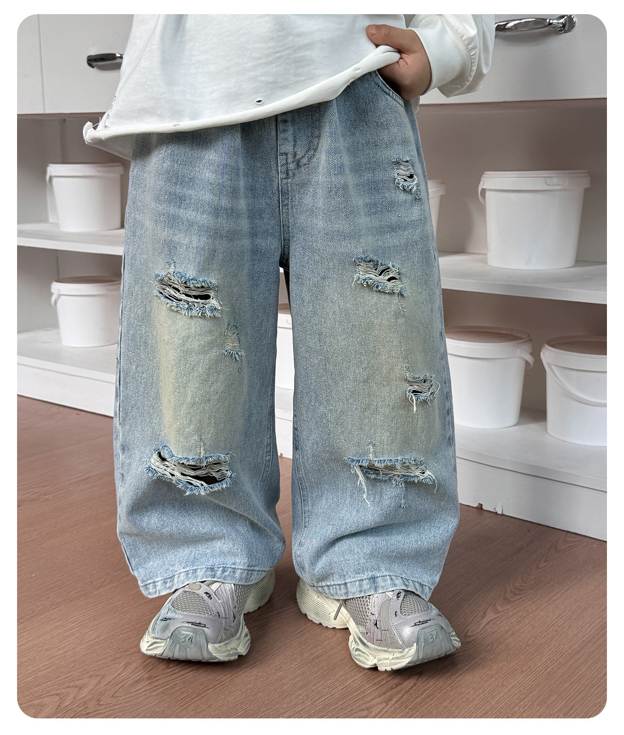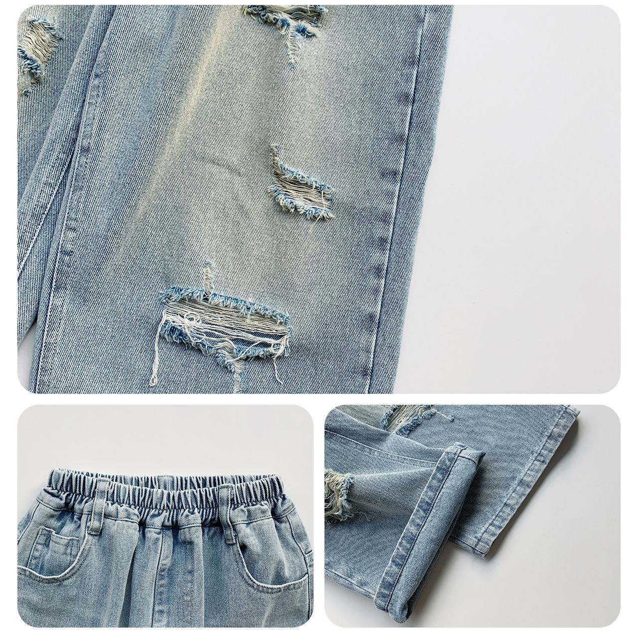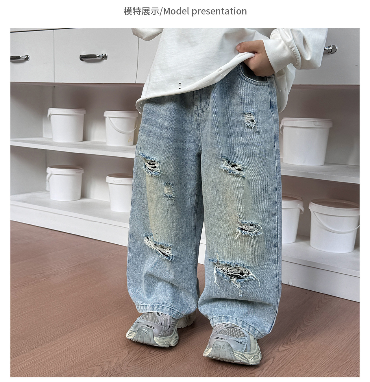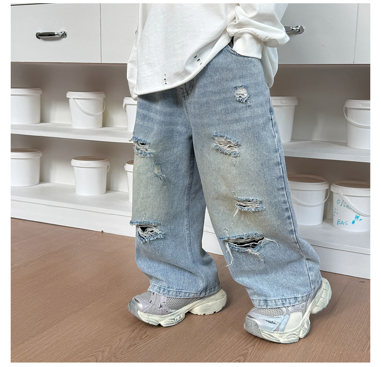 노란 진흙 찢어진 청바지 봄 여름 가을 소년 미국 복고풍 클린 핏 하이 스트리트 마이크로 스트레이트 트렌디 바지스토어 가기