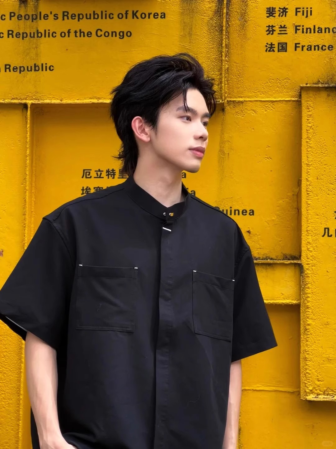 새로운 중국 스타일 수직 칼라 반팔 셔츠 남자의 여름 면허 약혼 착용 국가 스타일 숨겨진 버클 작업복 반소매 셔츠스토어 가기