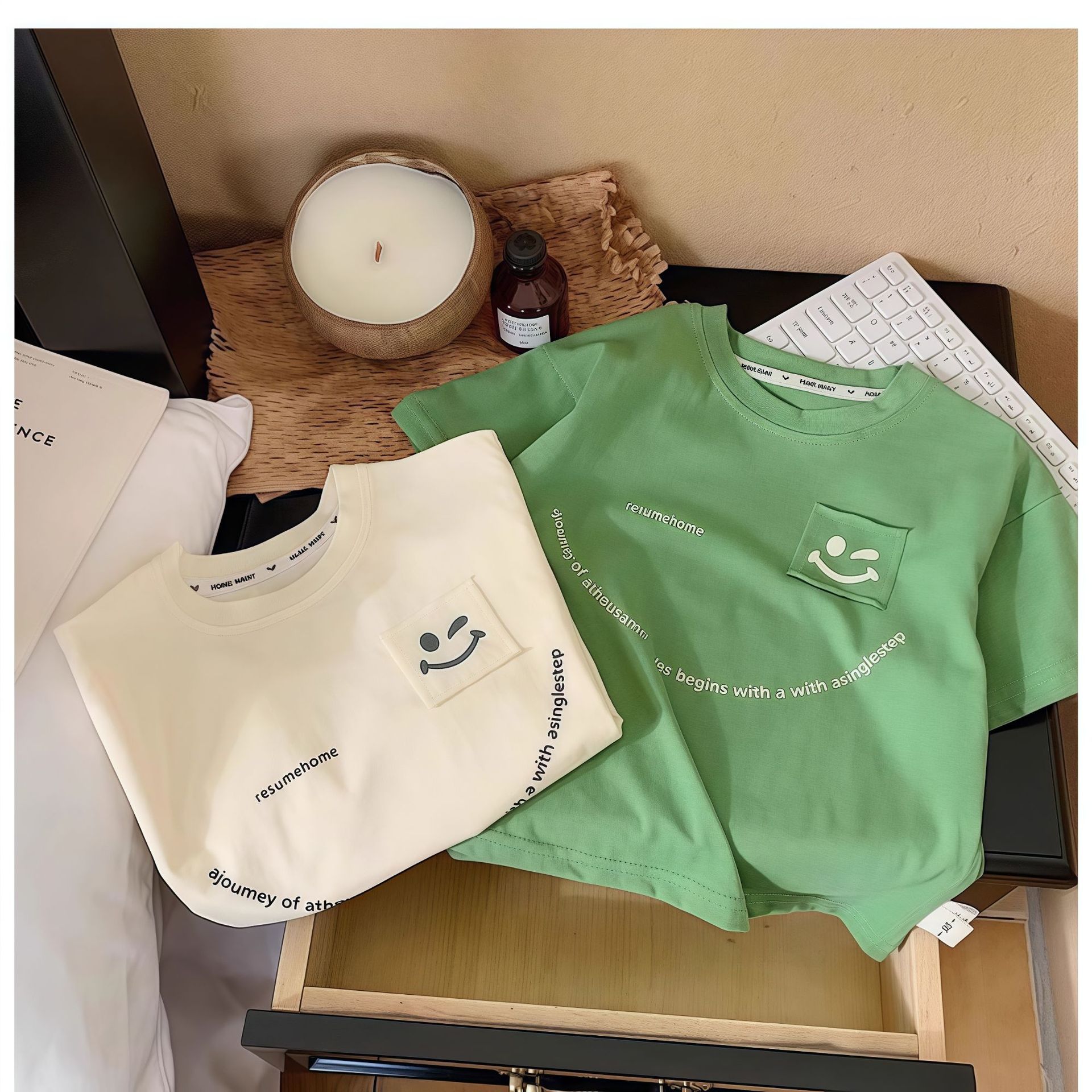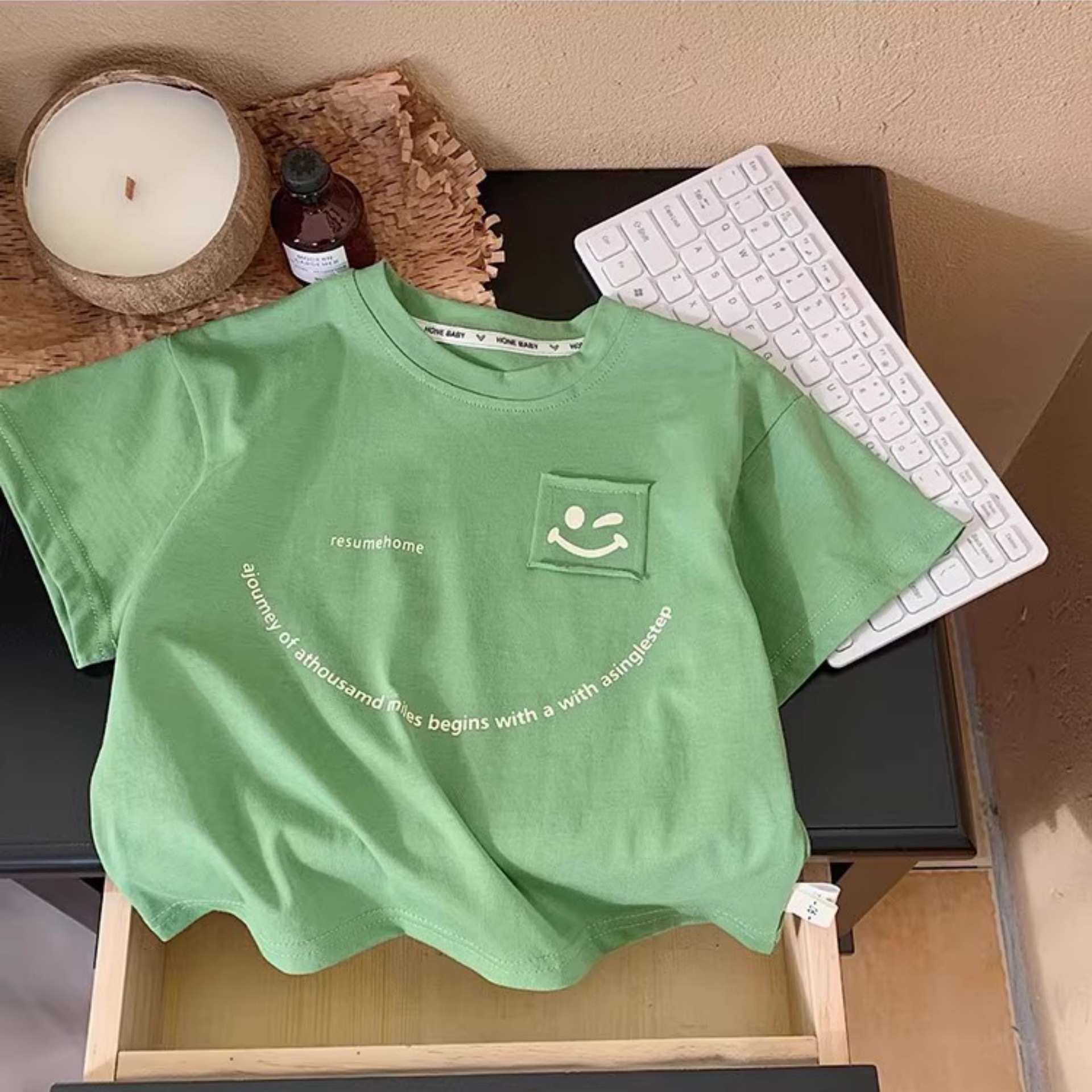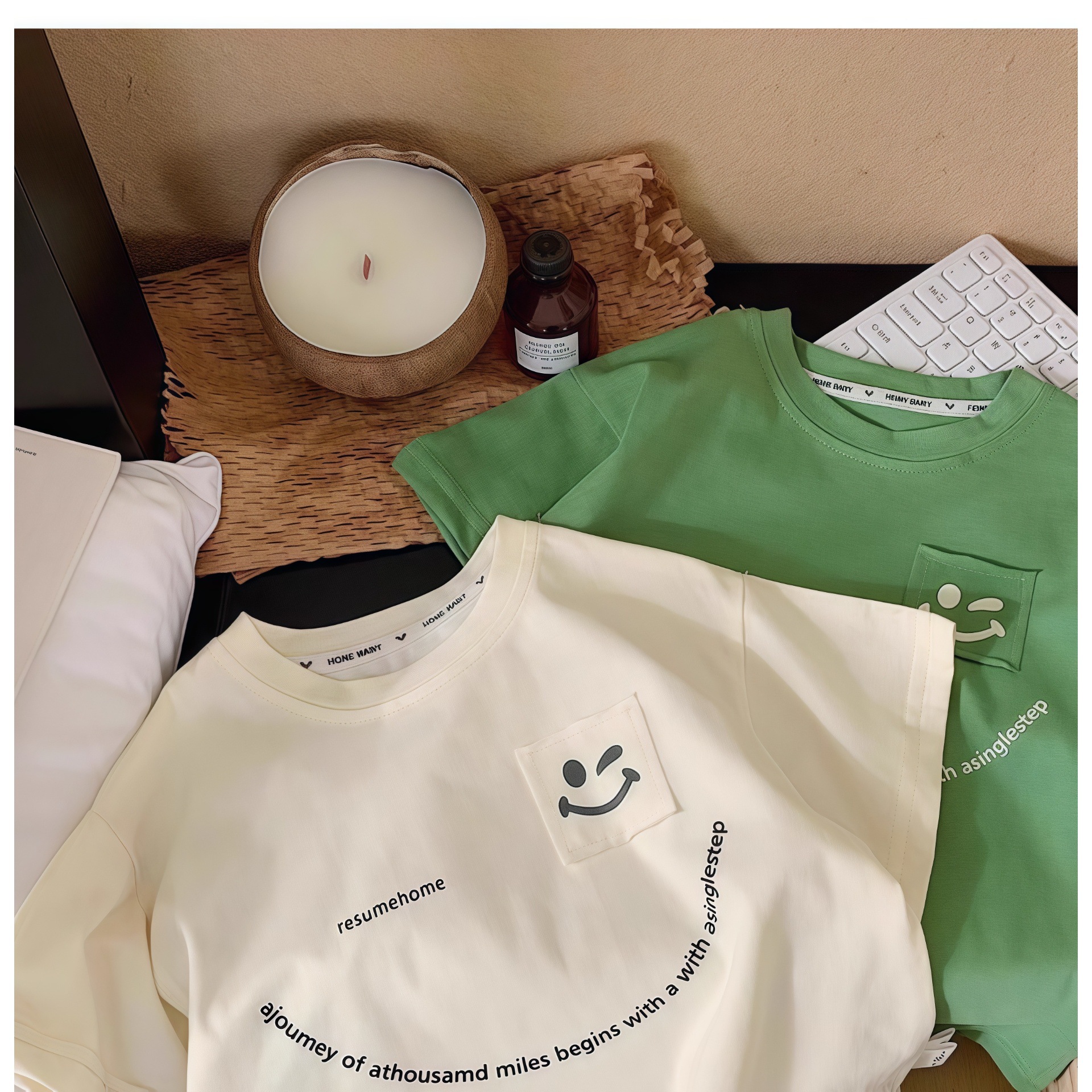 아동용 반팔 티셔츠 2025 Linlinma 중소형 어린이 면 여름 아동복 소년 잘 생긴 웃는 탑스토어 가기