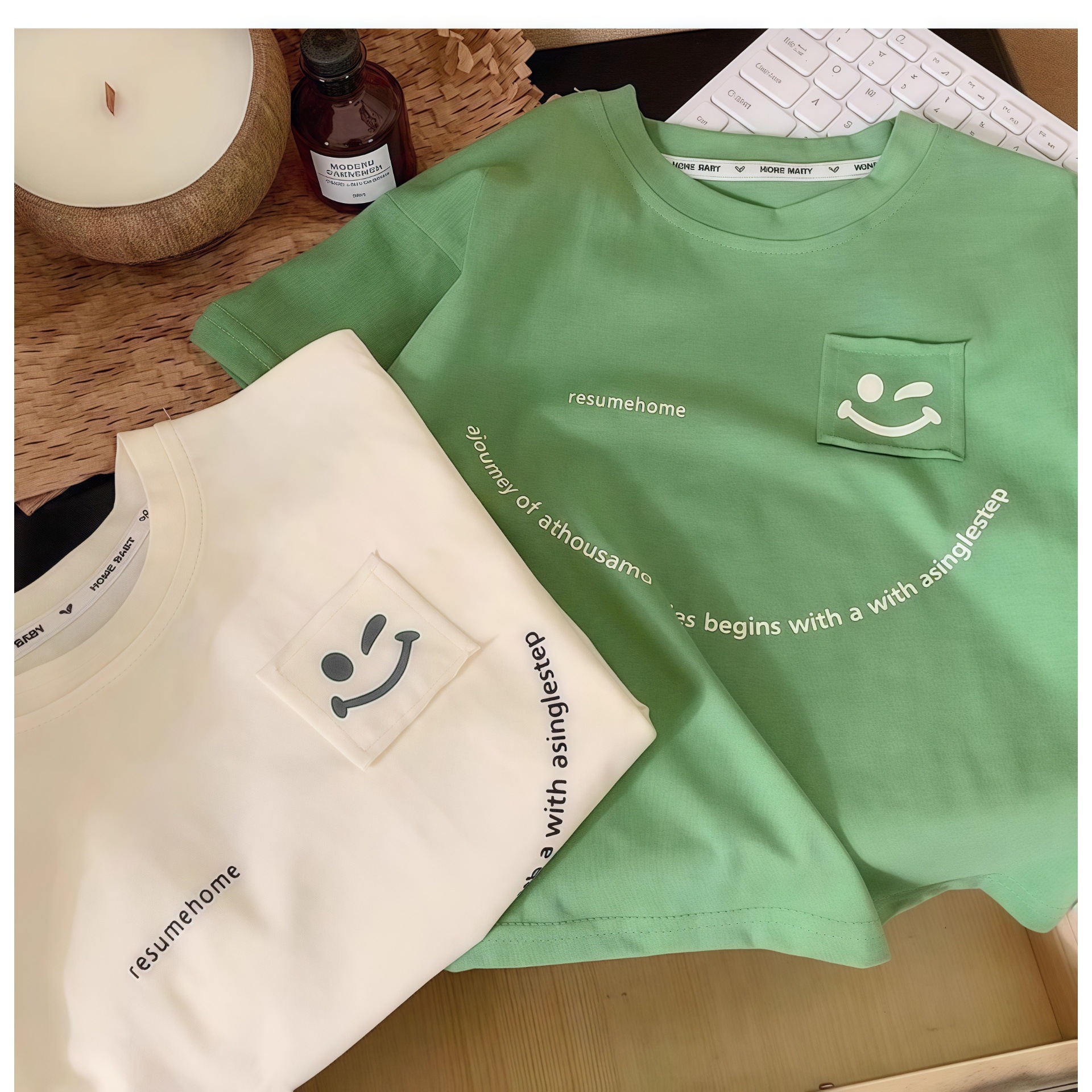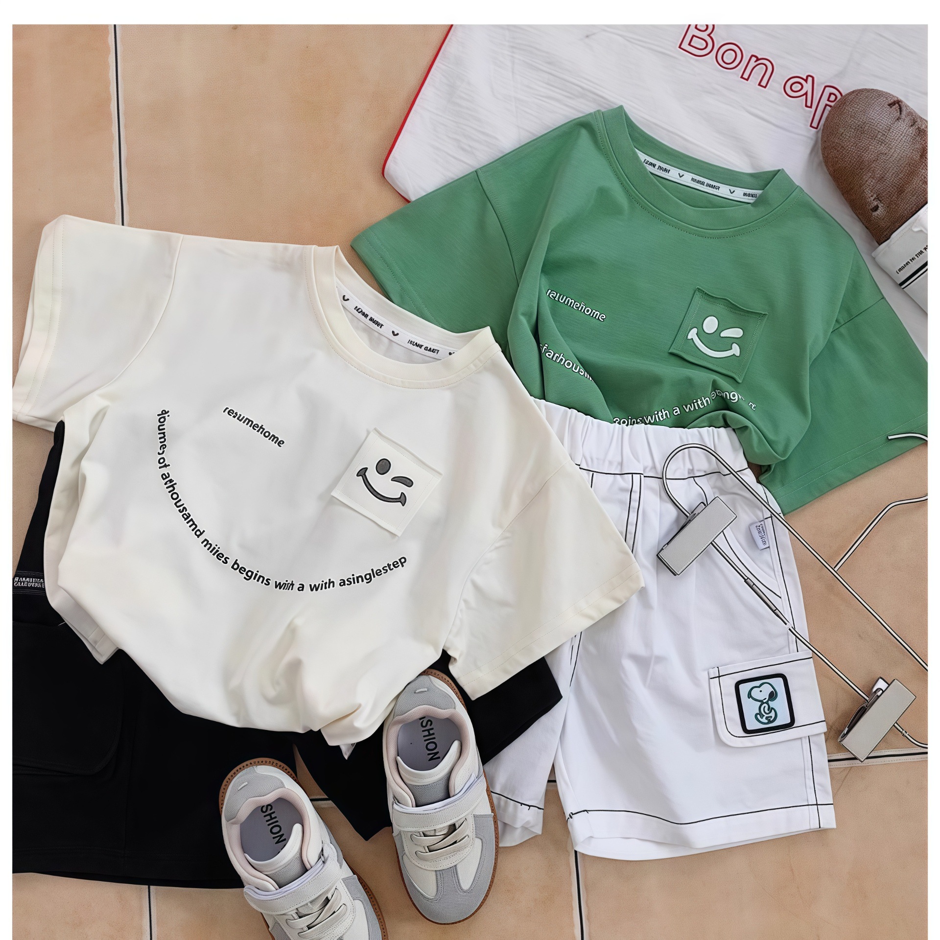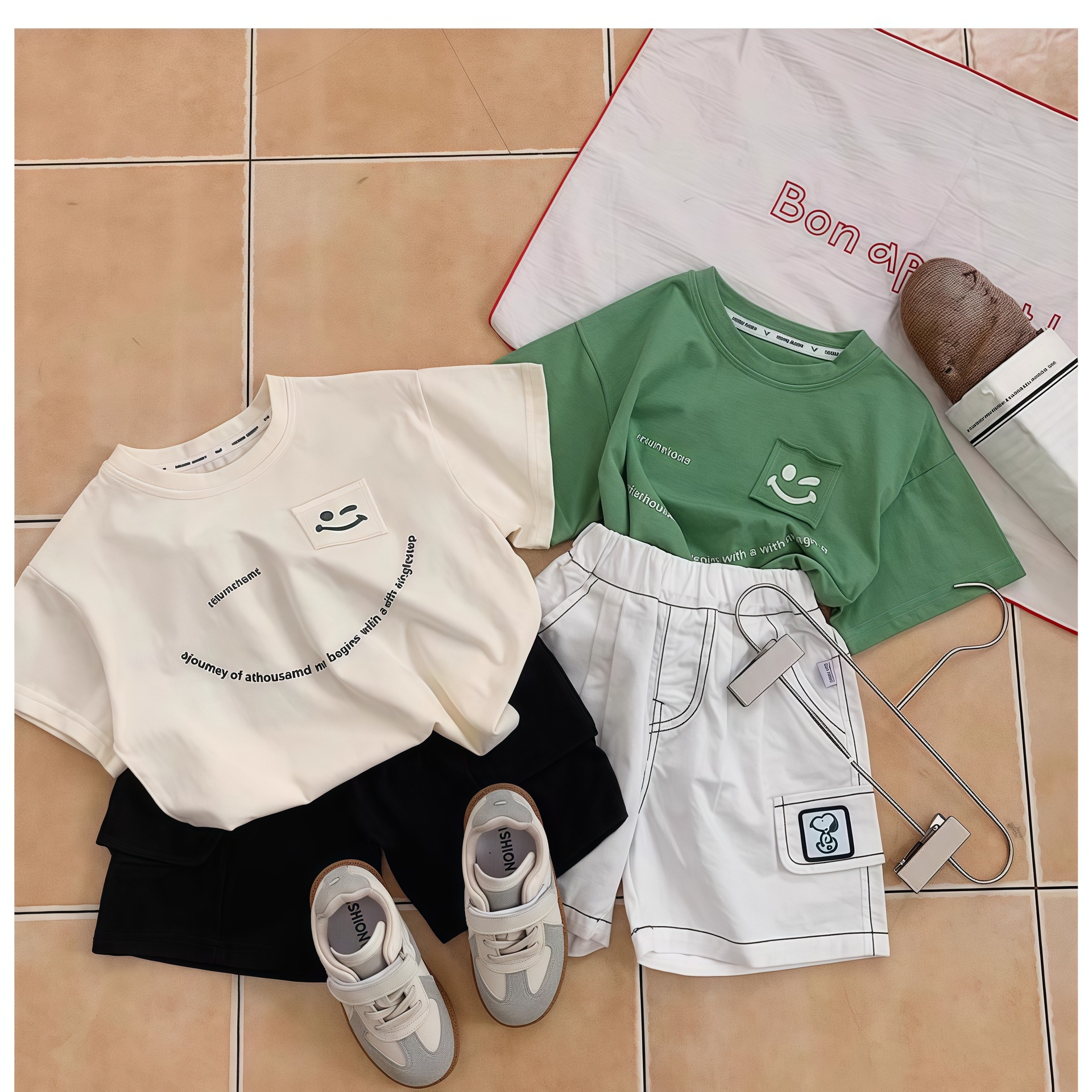 아동용 반팔 티셔츠 2025 Linlinma 중소형 어린이 면 여름 아동복 소년 잘 생긴 웃는 탑스토어 가기
