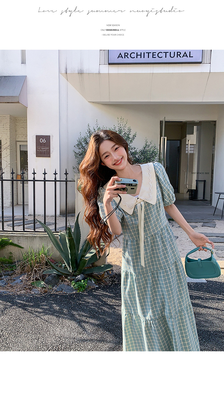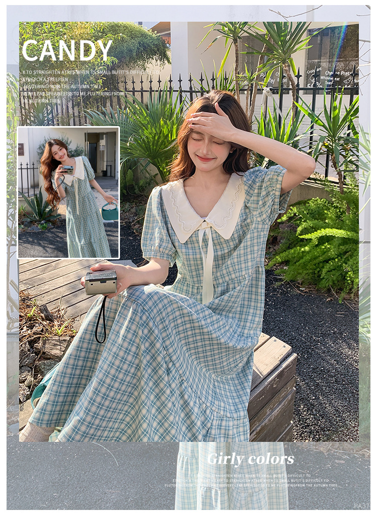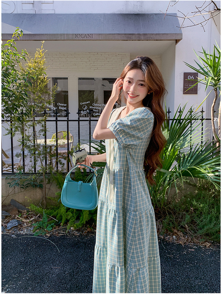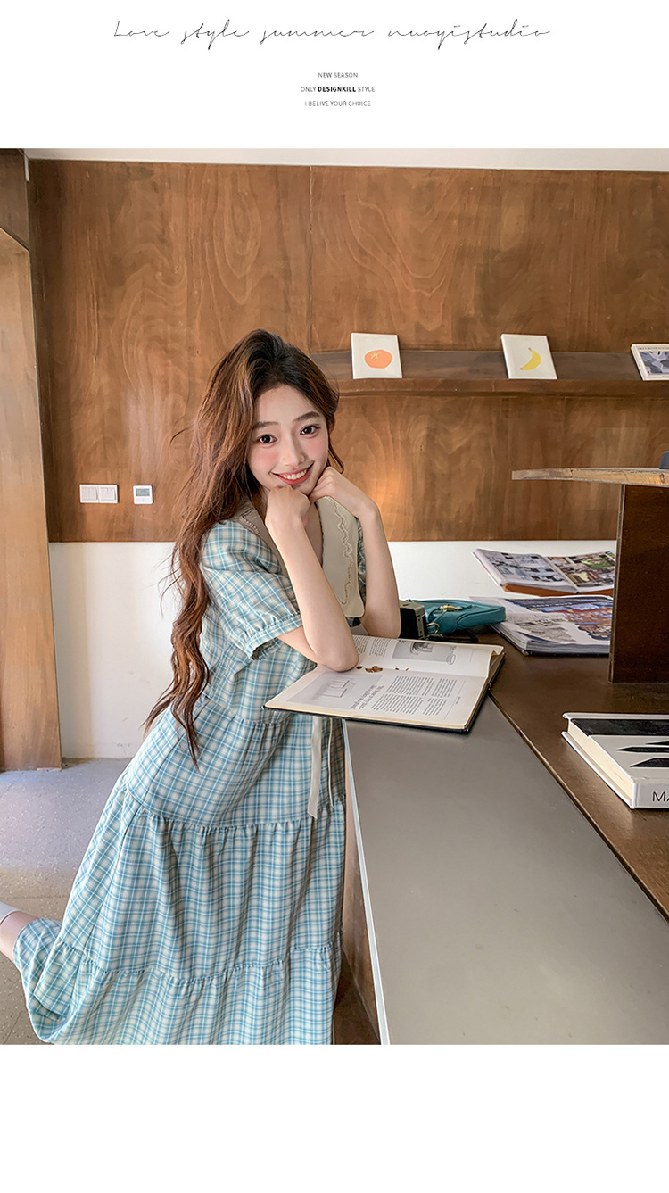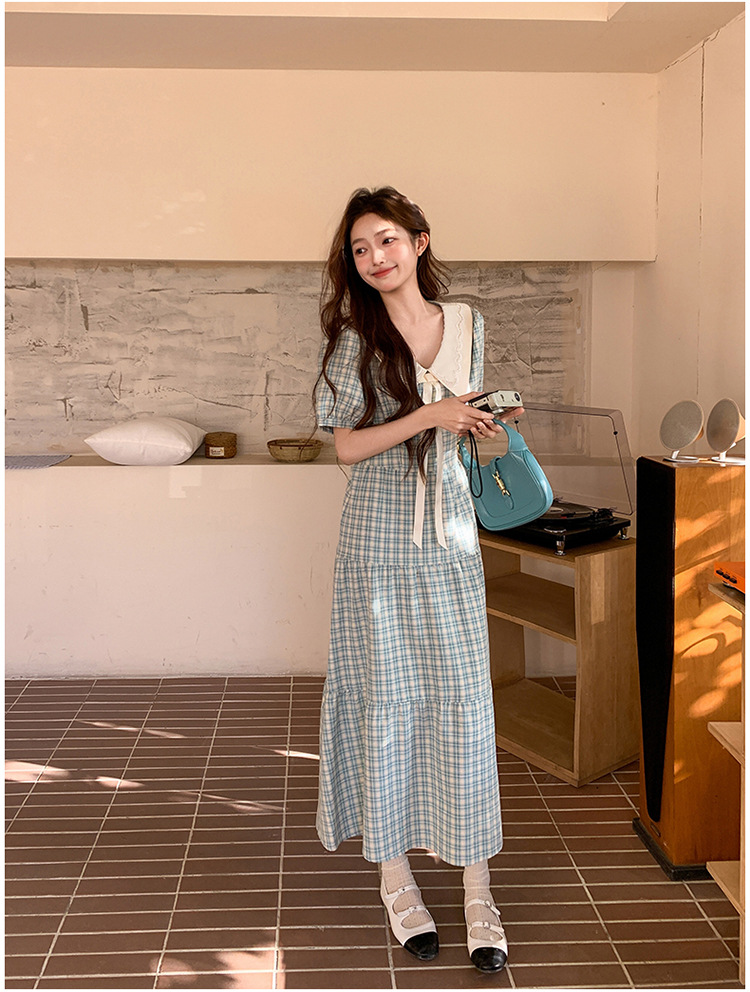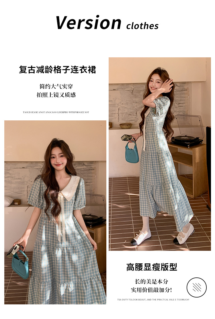 리얼 샷 아카데미 스타일 체크 무늬 원피스 여자 중간 길이 2025 여름 새로운 프랑스 스타일 슬리밍 슈퍼 니스 롱 스커트스토어 가기
