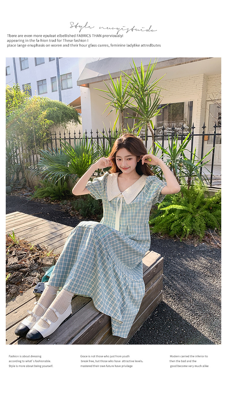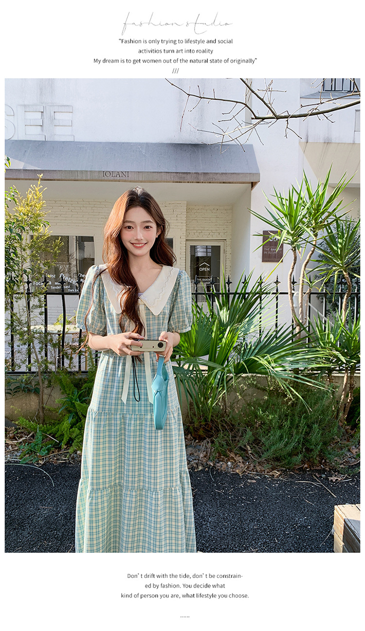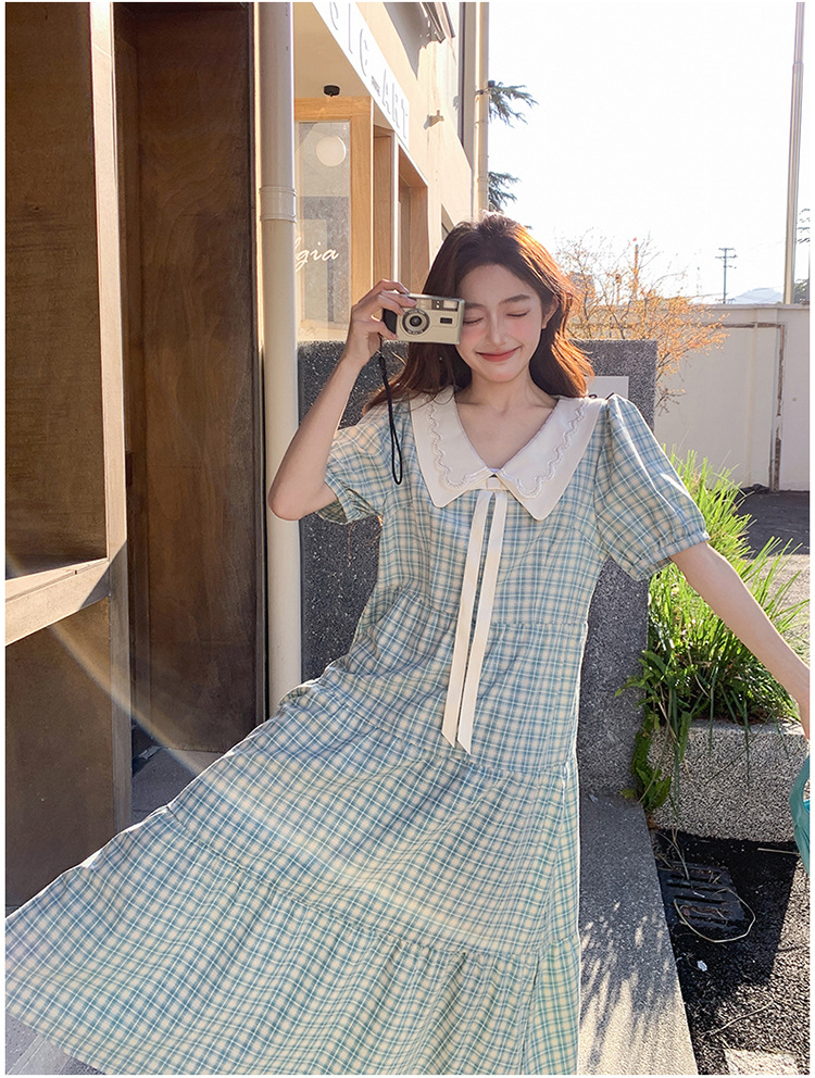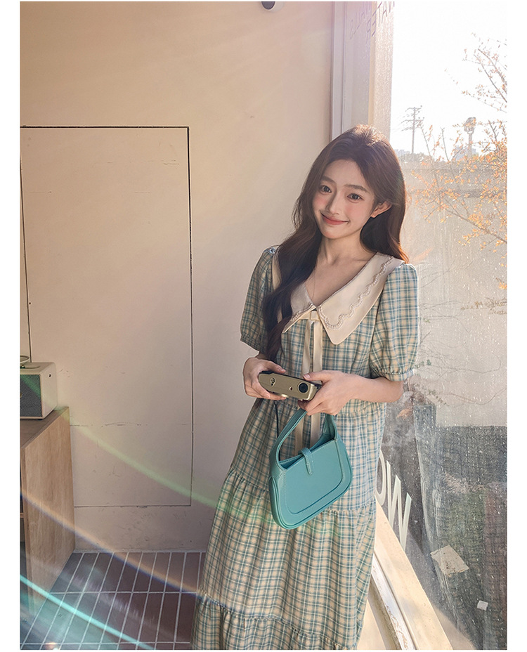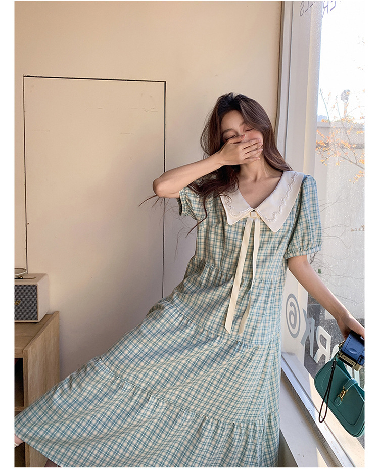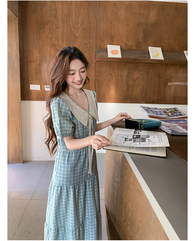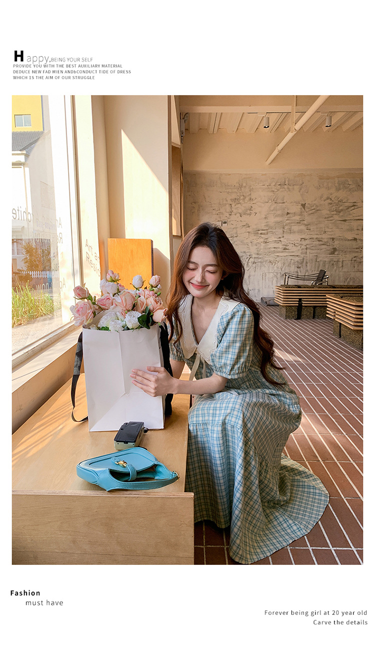리얼 샷 아카데미 스타일 체크 무늬 원피스 여자 중간 길이 2025 여름 새로운 프랑스 스타일 슬리밍 슈퍼 니스 롱 스커트스토어 가기