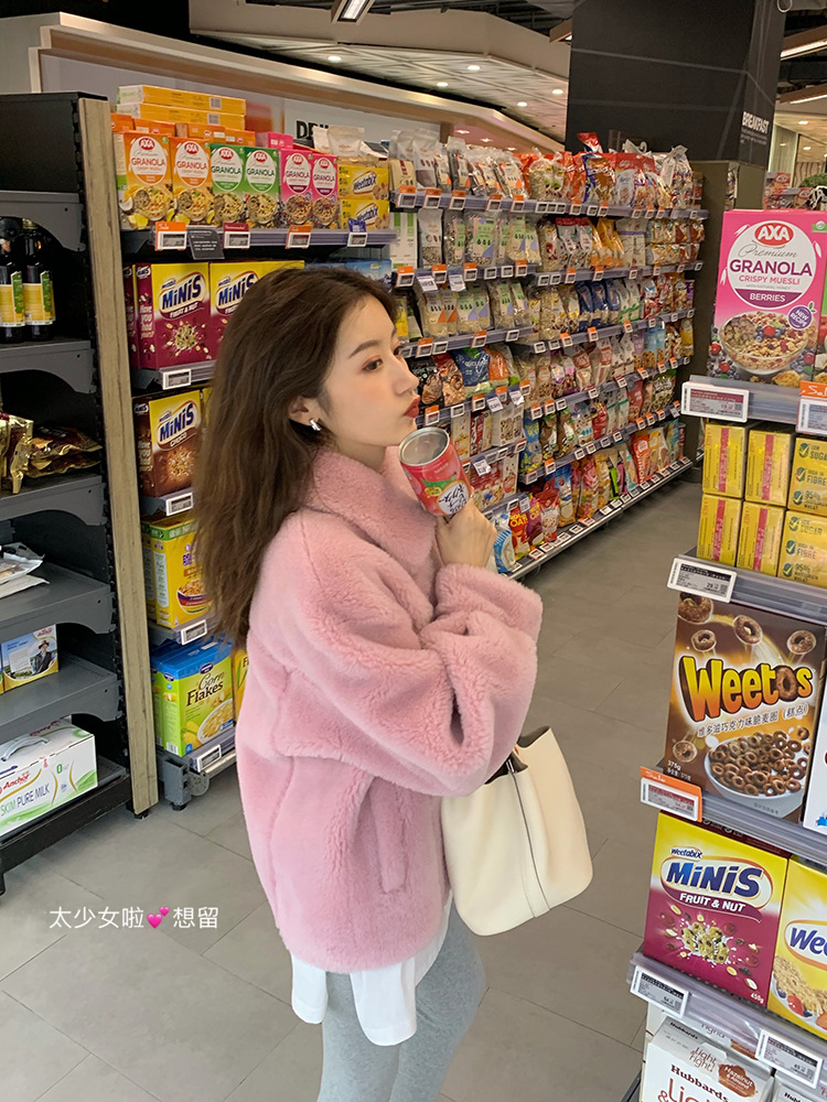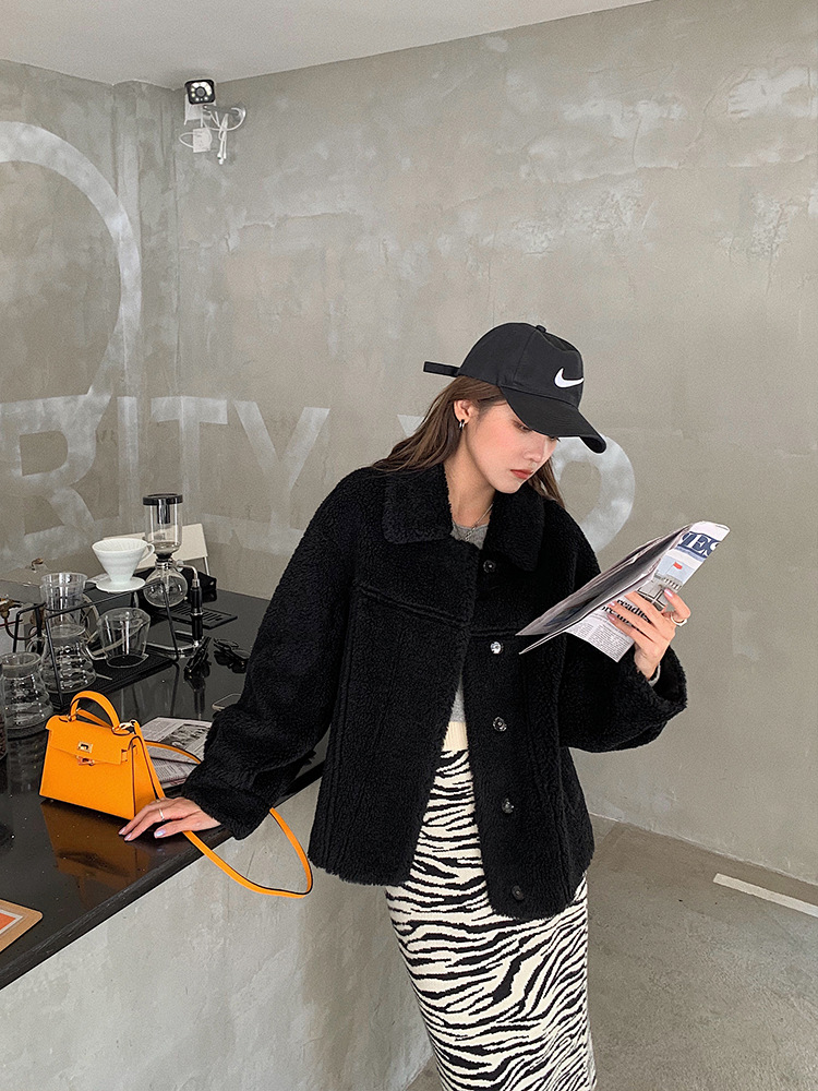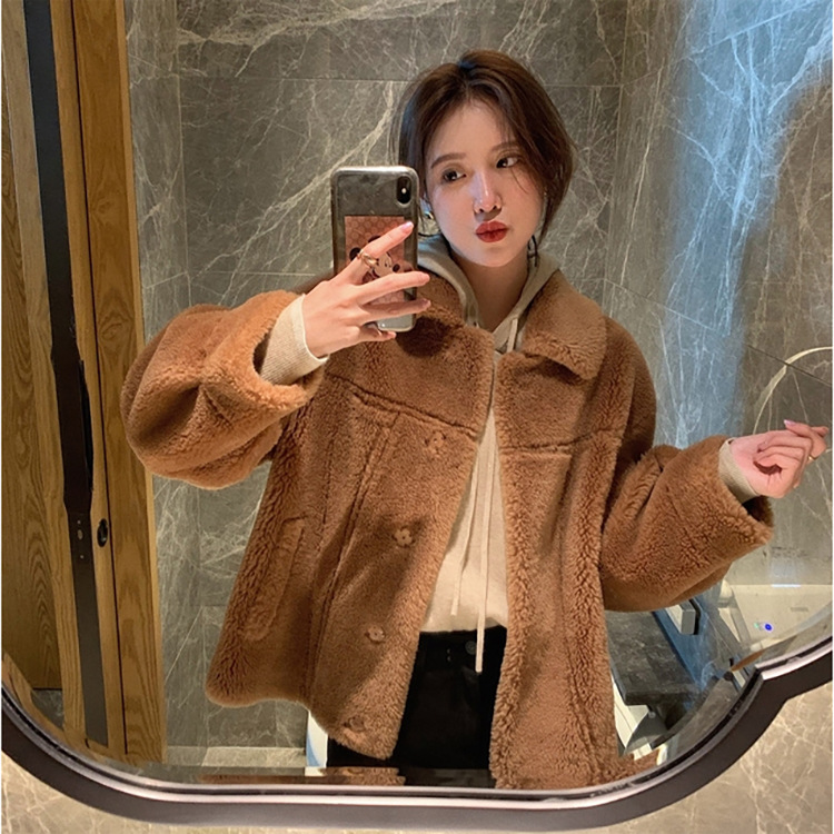 Maillard 가을과 겨울 양고기 모피 코트 여성의 두꺼운 따뜻한 모피 원 곡물 양 코트스토어 가기
