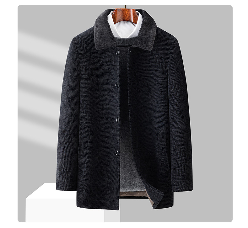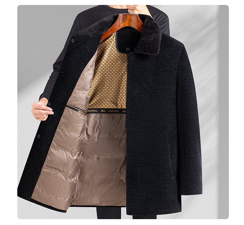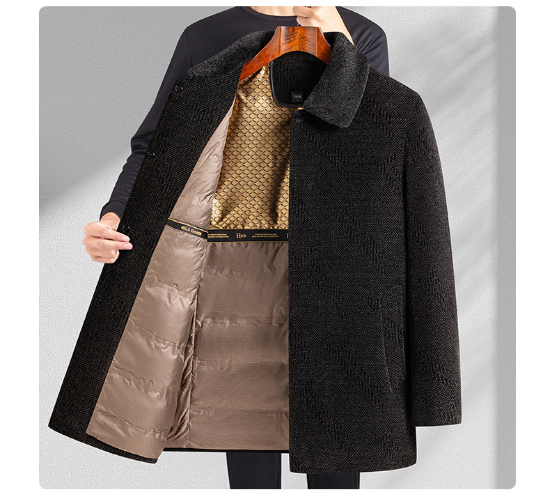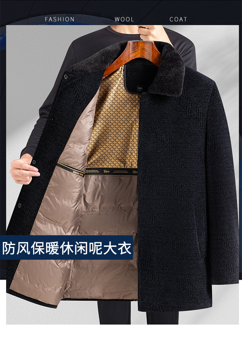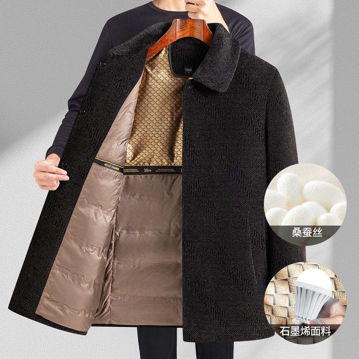 남자 비즈니스 Chenille 모직 코트 하이 엔드 뽕나무 실크 누빔안감 아빠 겨울 코트